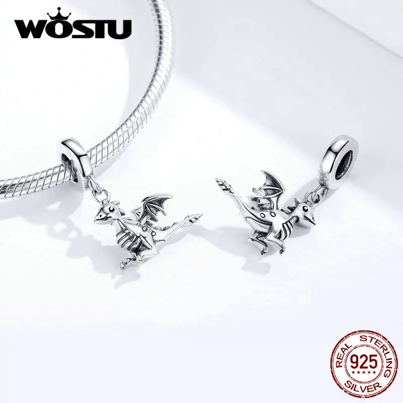 WOSTU, подлинный 925 пробы, серебряный, Drogon, подвеска, подходит для оригинального браслета и браслета, подвеска, Подвески для изготовления ювелирных изделий CQC1322