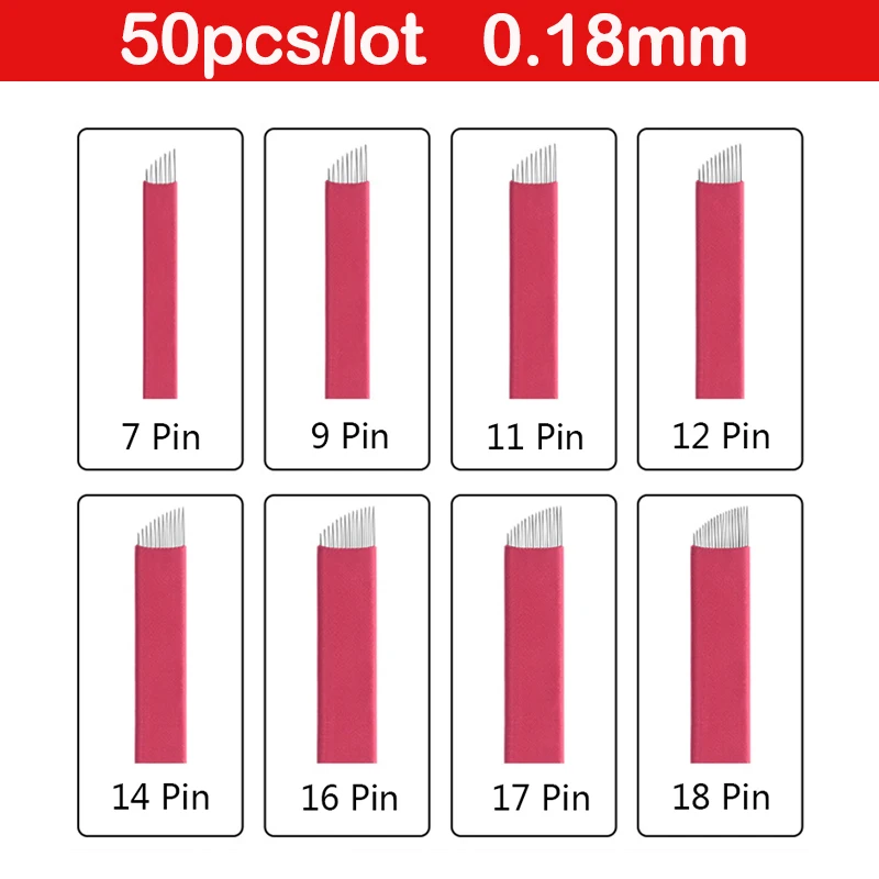 50 шт., иглы для перманентного макияжа, 0,18 мм, 9, 11, 12, 14 U