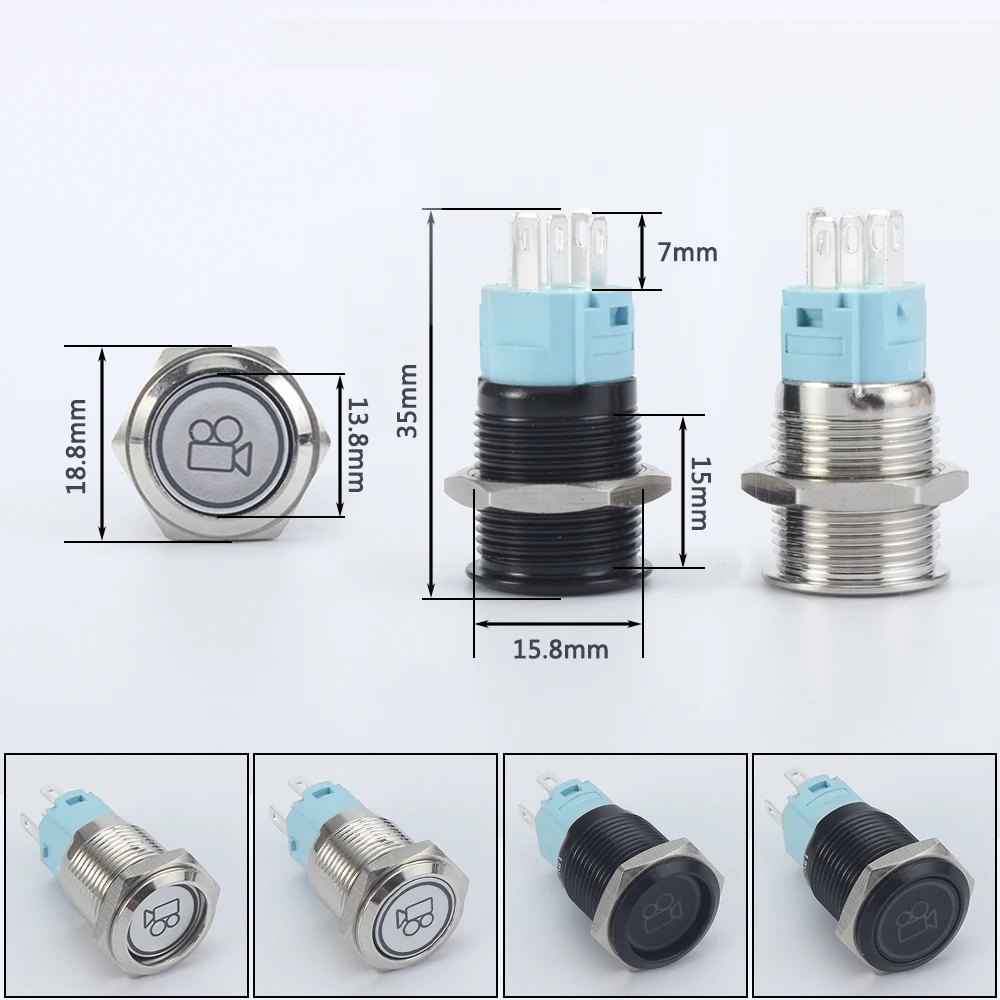 Кнопочный переключатель для автомобильных символов, 16 мм, металл, латуньоксид, черное покрытие