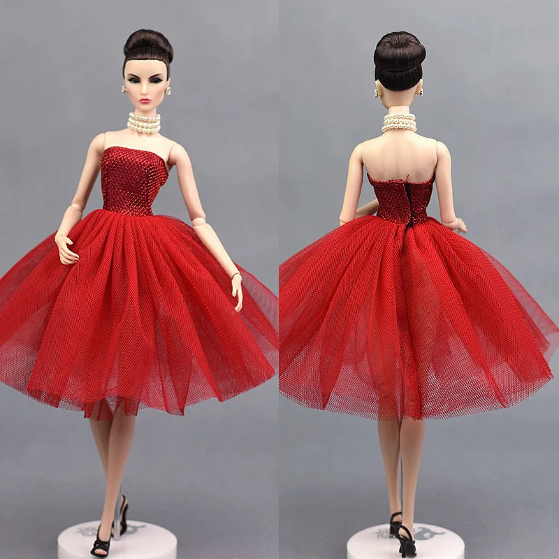 Красное короткое балетное платье для куклы Барби, цельное вечернее платье, Одежда для кукол Барби 16, BJD аксессуары для кукол игрушки