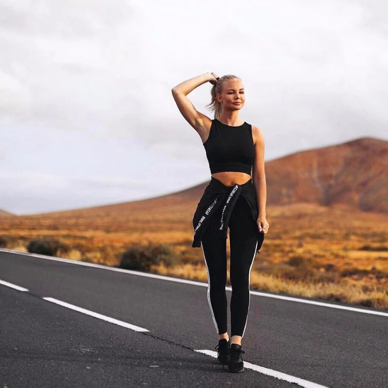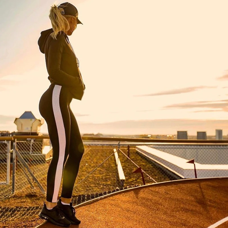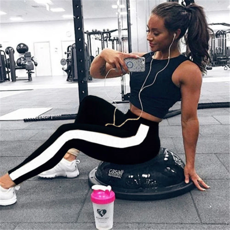 Леггинсы женские, черно-белые, с высокой талией, в полоску по бокам