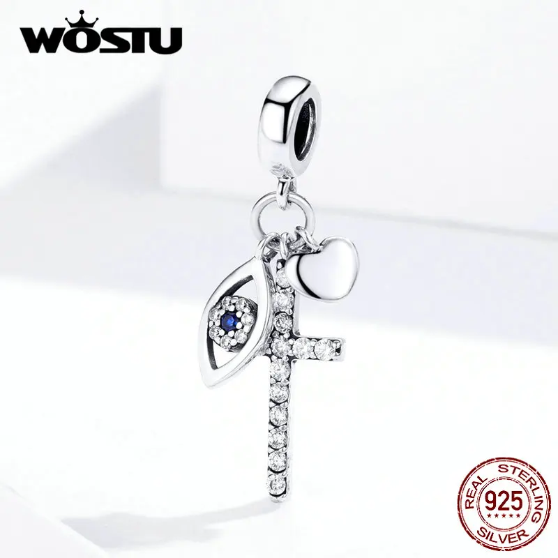 WOSTU, настоящее 925 пробы, серебряный, с крестиками, с бусинами в виде сердца, подходит для оригинального браслета и браслетов, подвеска, серебро 925, ювелирное изделие CQC1327