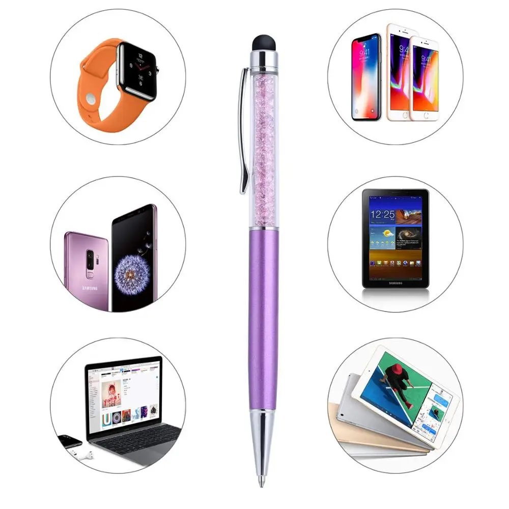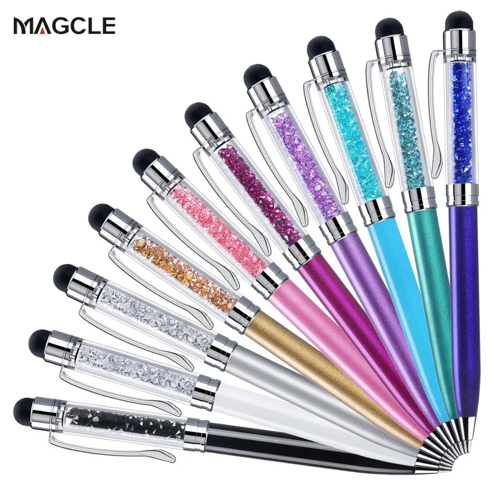 Шариковая ручка 2 в 1 Crystal, с чернилами, для всех устройств с емкостным сенсорным экраном, цветной стилус для Iphone, IOS, Android