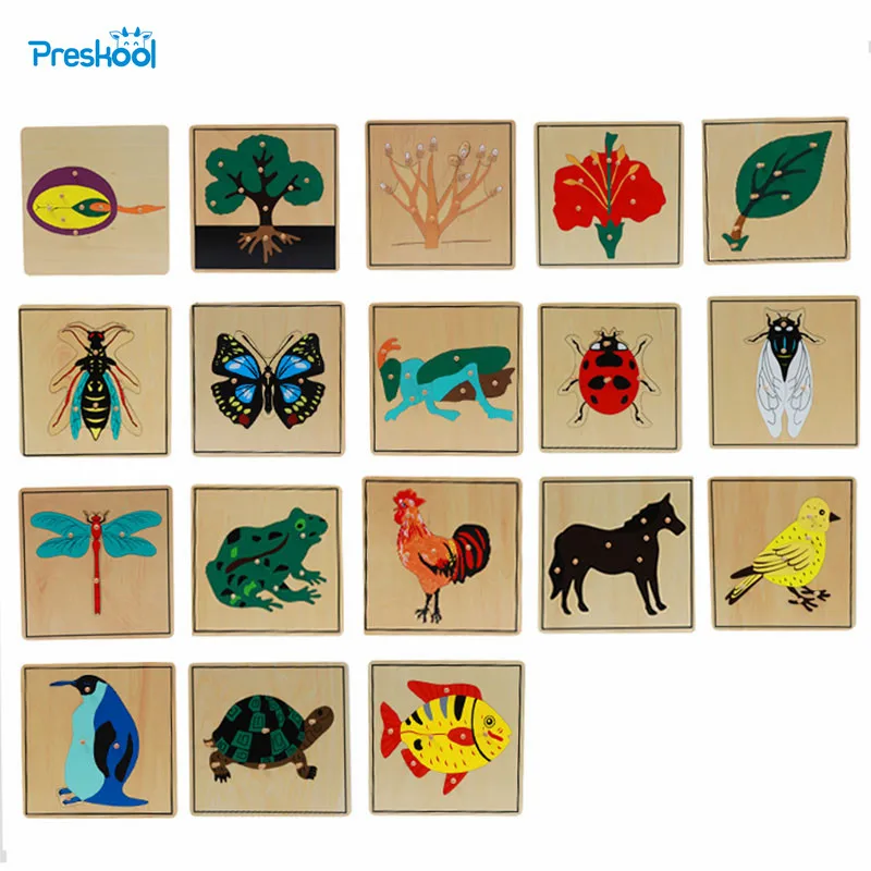 Монтессори, научные и культурные инструкции, животные, растения, насекомые, деревянная мозаика для детского сада, игрушки для детей