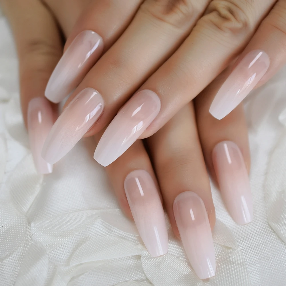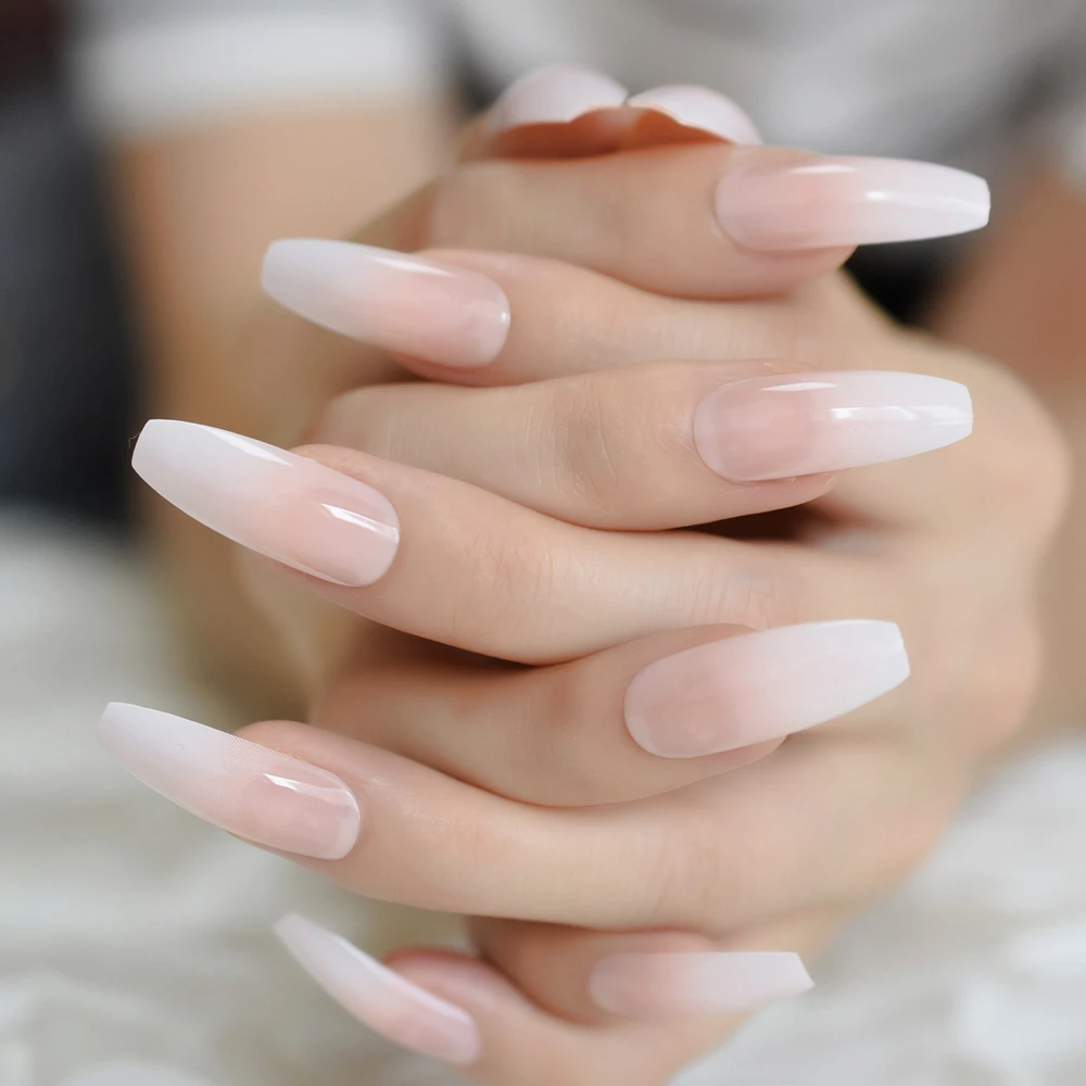 Натуральный гроб, повседневный салон, накладные ногти, длинные, полное покрытие, французские накладные ногти, градиентные гладкие, хорошее качество, балетки, искусственные губки