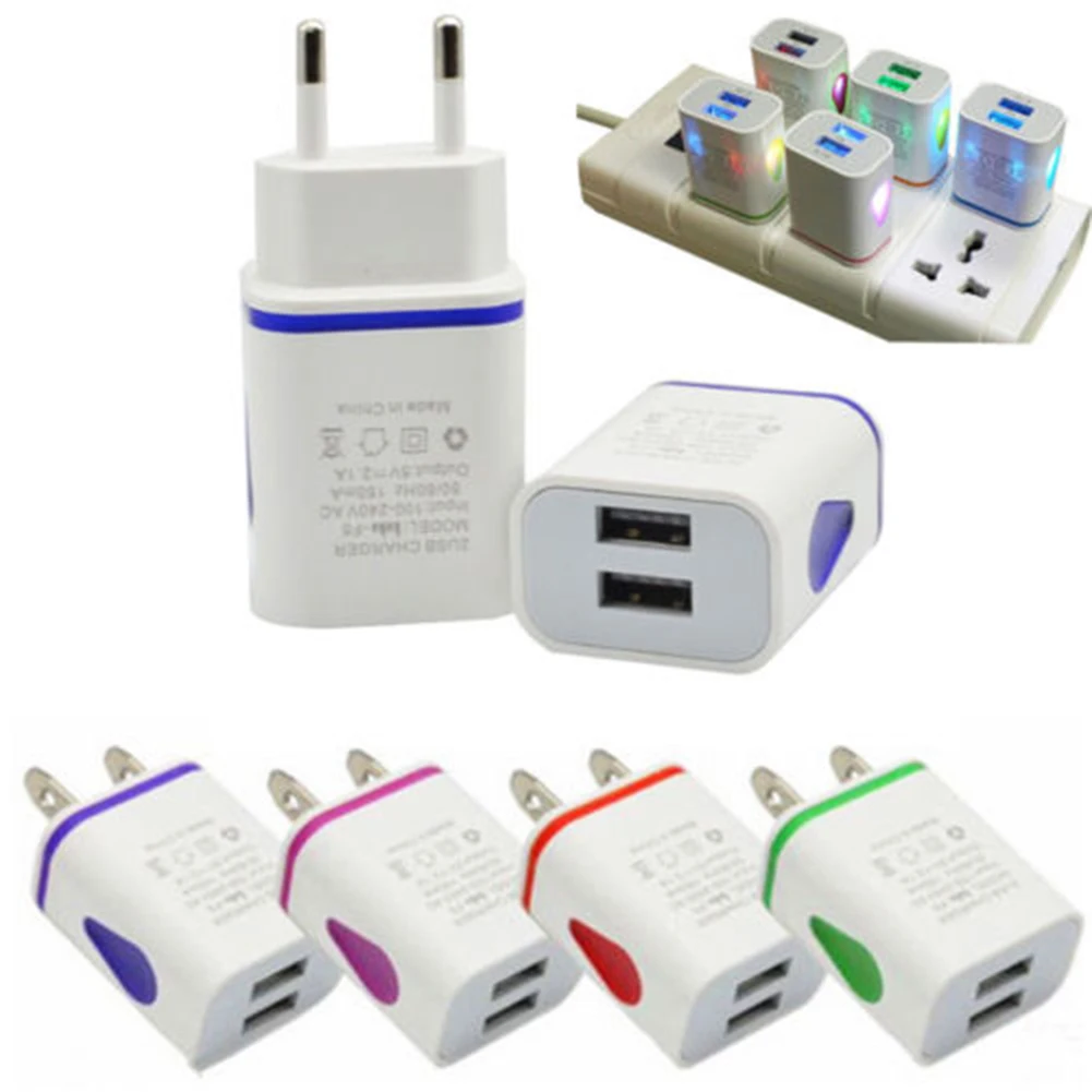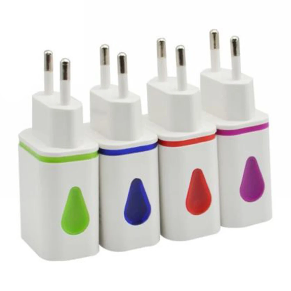 Характеристики продукта: 1. 2.1A 5V LED с 2 портами (стандарт настенное зарядное устройство адаптер для путешествий Быстрая зарядка ЕС штепсельная вилка американского стандарта для телефона. 2. Для домашнего путешествия usb-портами и светодиодным индикатором устройство работающее от прикуривателя с 2 портами сетевое зарядное смарт-зарядное устройство адаптер США/ЕС розетка универсального. 3. Новый товар высокого качества. 4. Портативный, идеально подходит для путешествий. 5. Высокая эффективность и низкое потребление энергии. 6. Отлично подходит для зарядки сотовых телефонов, камер, MP3 игроков. 7. С 2 портами (стандарт мощность портовый зарядный с погрешностью в пределах 2-х мобильных устройств одновременно через только одну розетку. Характеристики продукта: 1. Цвет: синий/фиолетовый/зеленый/красный/оранжевый 2. Стандарт вилки: ЕС/США (по желанию) 3. Материал: высокая температура АБС огнестойкий материал европейскими нормами 4. Размер (прибл.): Длина: 8 см/3,15 дюйм (ов); Ширина: 3,8 см/1,50 дюйм (ов); Высота: 2,8 см/1,10 дюйм (ов) нормами США 5. Входное напряжение: AC 100V - 240V 6. Частота: 50 - 60 Гц 7. Выходной ток: DC 5V-2.1A Кол-во USB 8. Разъем: 2 9. Защита от короткого замыкания Защита от перенапряжения, защита от перегрузки, защита от короткого замыкания, интеллигентая (ый) ограничение тока. 10. Вес: около 31 г 11. Индикация функция: поддержка функции индикации Упаковочный лист: 1 x Зарядное устройство USB