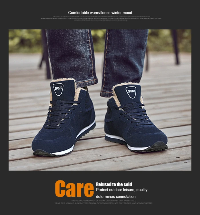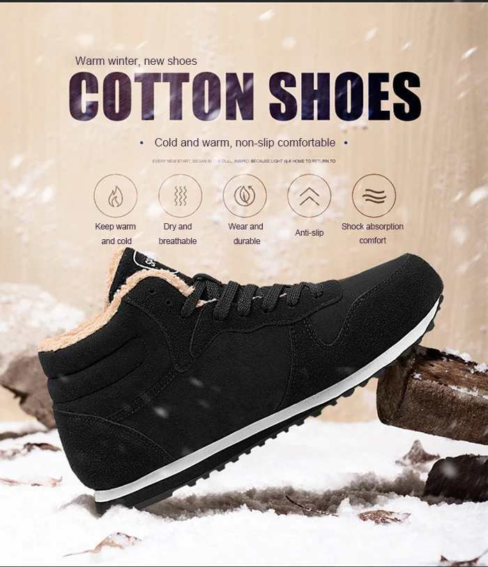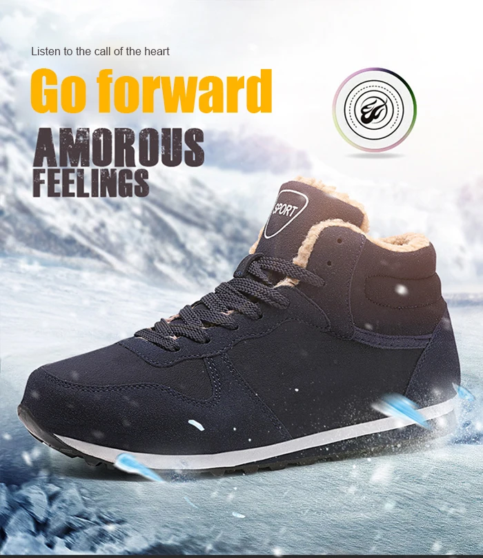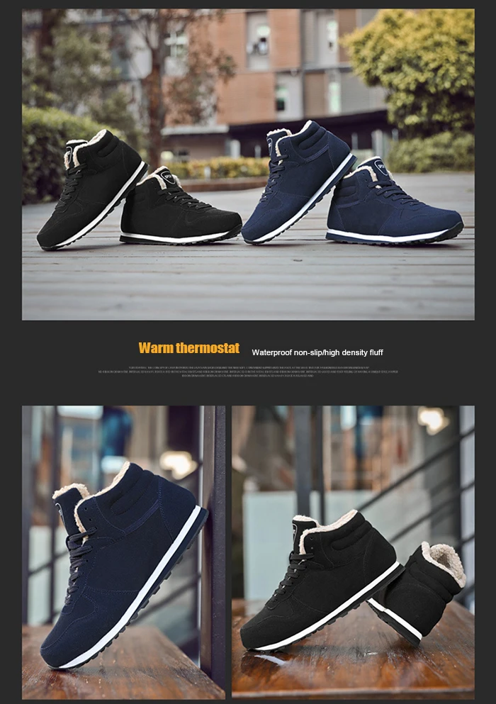 Мужские зимние повседневные ботинки, Зимние полуботинки, цвет черныйсиний, размеры 4647, прогулочная обувь, плоская подошва, плюшевые кроссовки