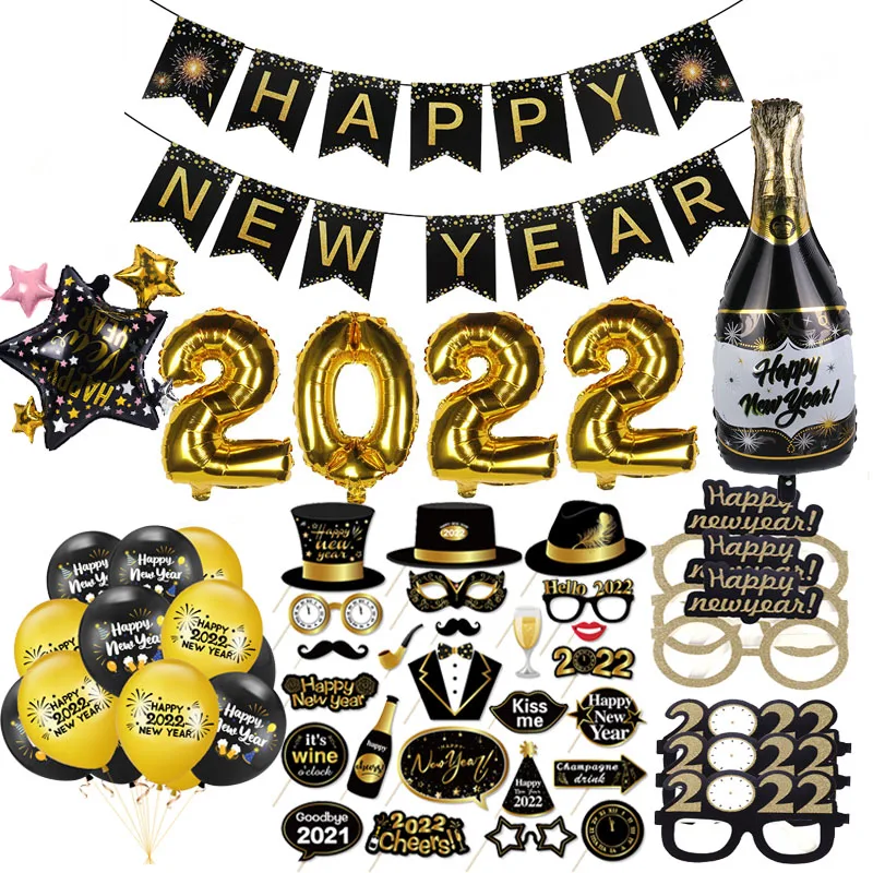 Украшение на новый год 2022, фоторамка, реквизит, золотой, черный баннер, рождественские украшения, Рождественская декорация для новогодней вечевечерние НКИ