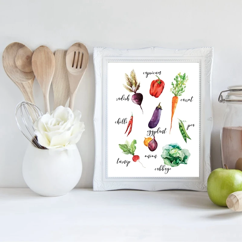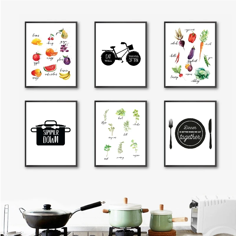 Современные настенные картины с принтом, модульный скандинавский настенный плакат с травами, фруктами и овощами, украшение для дома, кухни, ресторана