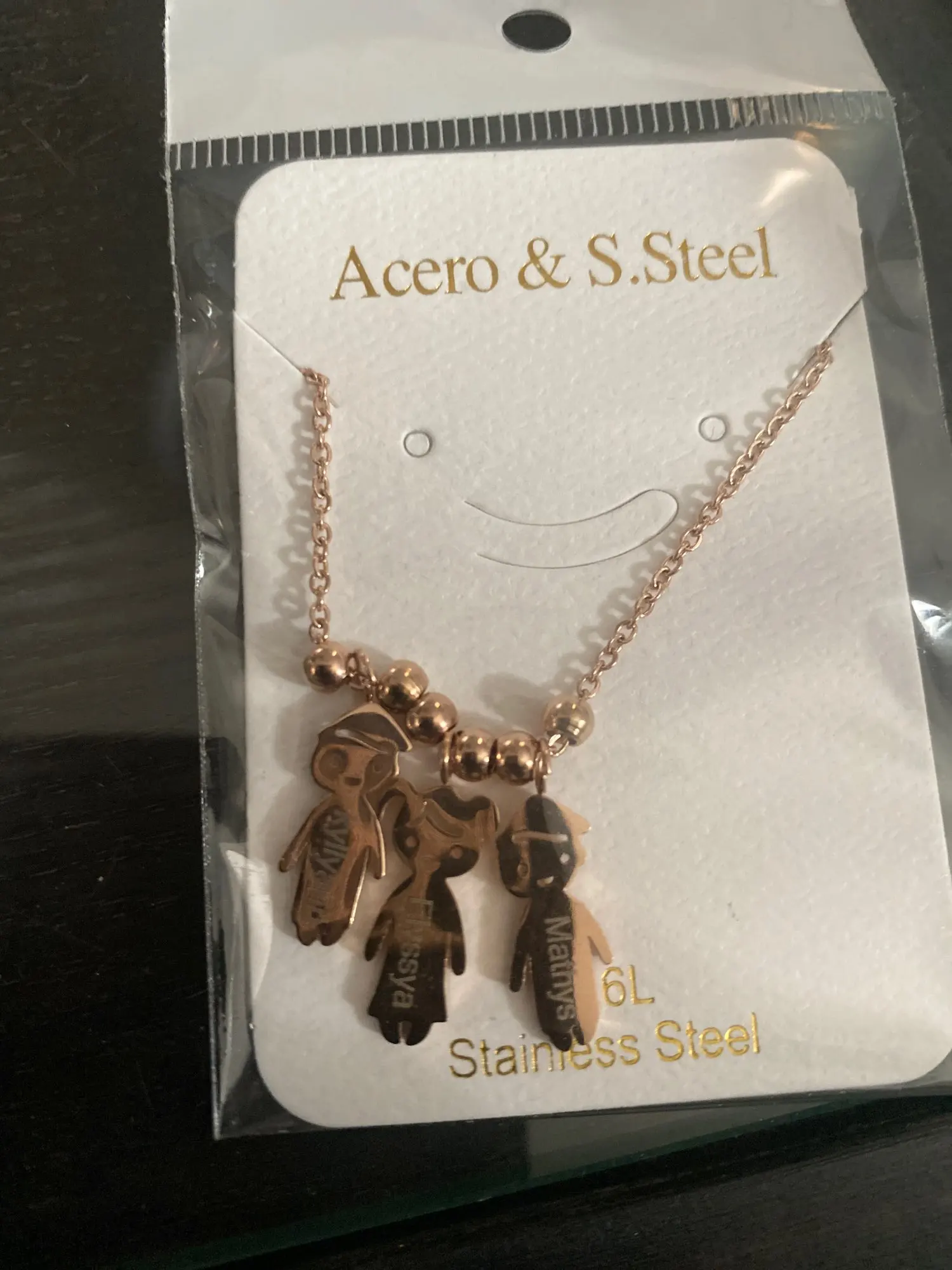 sí queda muy bonito en acero con los nombres de mi hijo puestos preciosos
