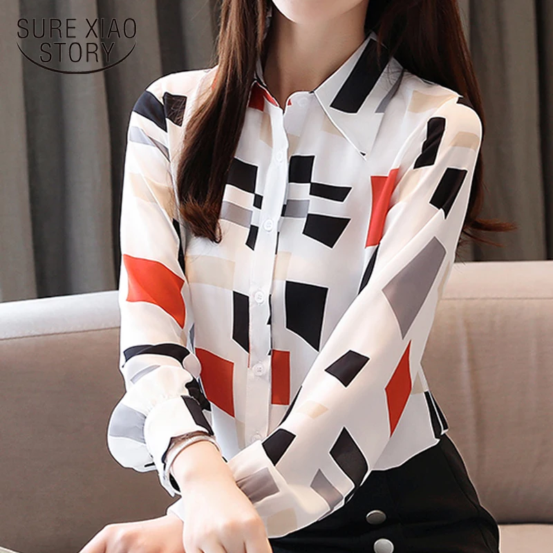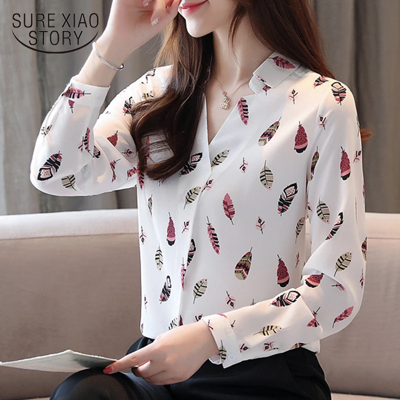 Женская блузка 2020 веснаосень женские Топы Блузка женская шифоновая рубашка с длинным рукавом Женские топы и блузки 6076 50