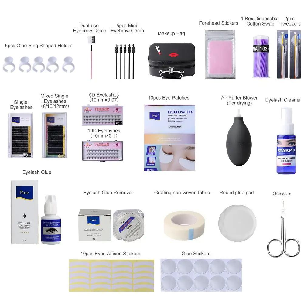Особенности:1. Набор для наращивания ресниц: Этот набор для наращивания ресниц делает егоЛегче практиковать наращивание ресниц.2.Привитые ресницы, плотные и натуральные, не оставляя следов трансплантации.3. Доступны в 2 шт различных форм пинцетов, различные ситуации с различными пинцетами, очень легко наносятся ресницы, достаточное количество двух различных накладных ресниц достаточно для вашей повседневной практики4. Подходит для более профессионального использования. Полные аксессуары для подготовки, нанесения и удаления ресниц.5. Все инструменты упакованы в косметический пакет, портативный для переноскиСписок:1 * расческа для бровей двойного назначения5 * гребень для бровей3 * сумка для хранения косметики4 * наклейка на лоб5 * кольцо для прививки1 трубка * ватные тампоны1 * Прямой пинцет1 * Изогнутый пинцет1 * наклейка на клейкую панель10 * привитый пластырь для глаз1 * одиночные накладные ресницы1 * Смешанные одиночные накладные ресницы1 * 10D волосы1 * 5D волосы1 коробка * пластырь для глаз (10 таблеток)1 * сухой шар1 * прививка клея (10 г)1 * средство для очистки ресниц (45 г)1 * гель для удаления клея (5g)1 * лента1 * Круглый Клей-коврик1 * ножницы