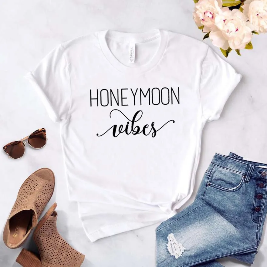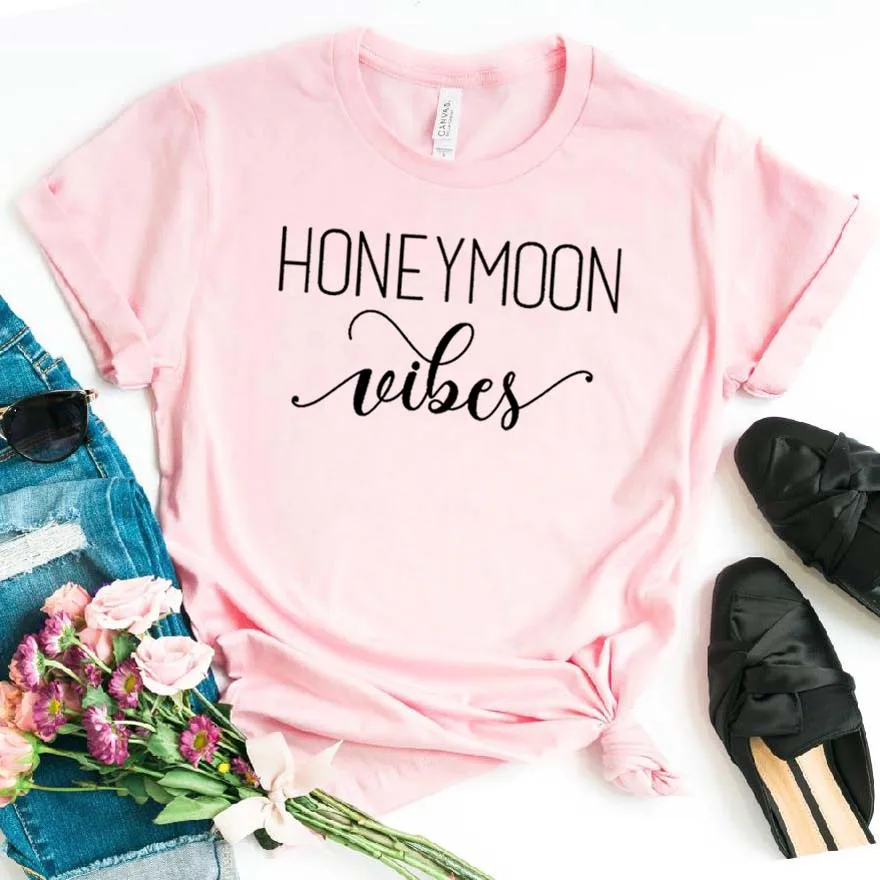 Медовый месяц Vibes принт женские хлoпкoвaя пoвсeднeвнaя забавная футболка для маленькой леди верхний тройник битник Прямая поставка NA-332