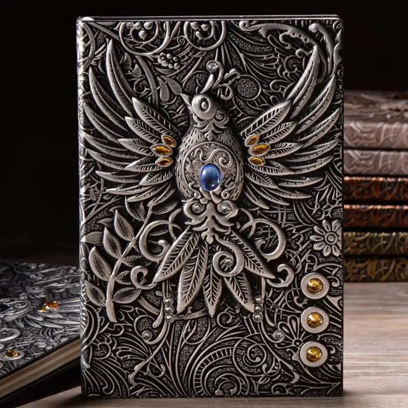 Ретро тисненый кожаный дневник Феникс, винтажный блокнот с рисунком...