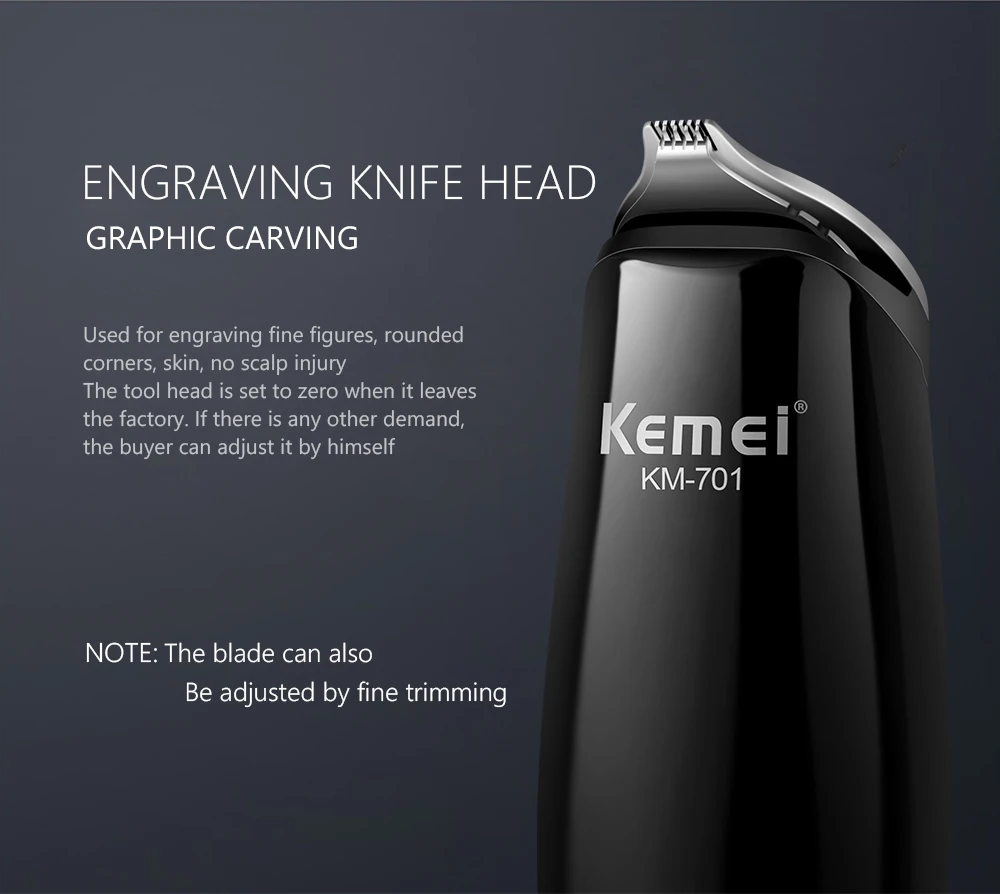 Технические характеристики:Бренд: KemeiГоловка: режущая задняя головка, режущая головка ножа, гравировальная головка ножа.Вес нетто: 250 г/0,55 фунтовРазмеры: 12,5*4,2 см/5,7 * 1.7inНапряжение: 100-240 В