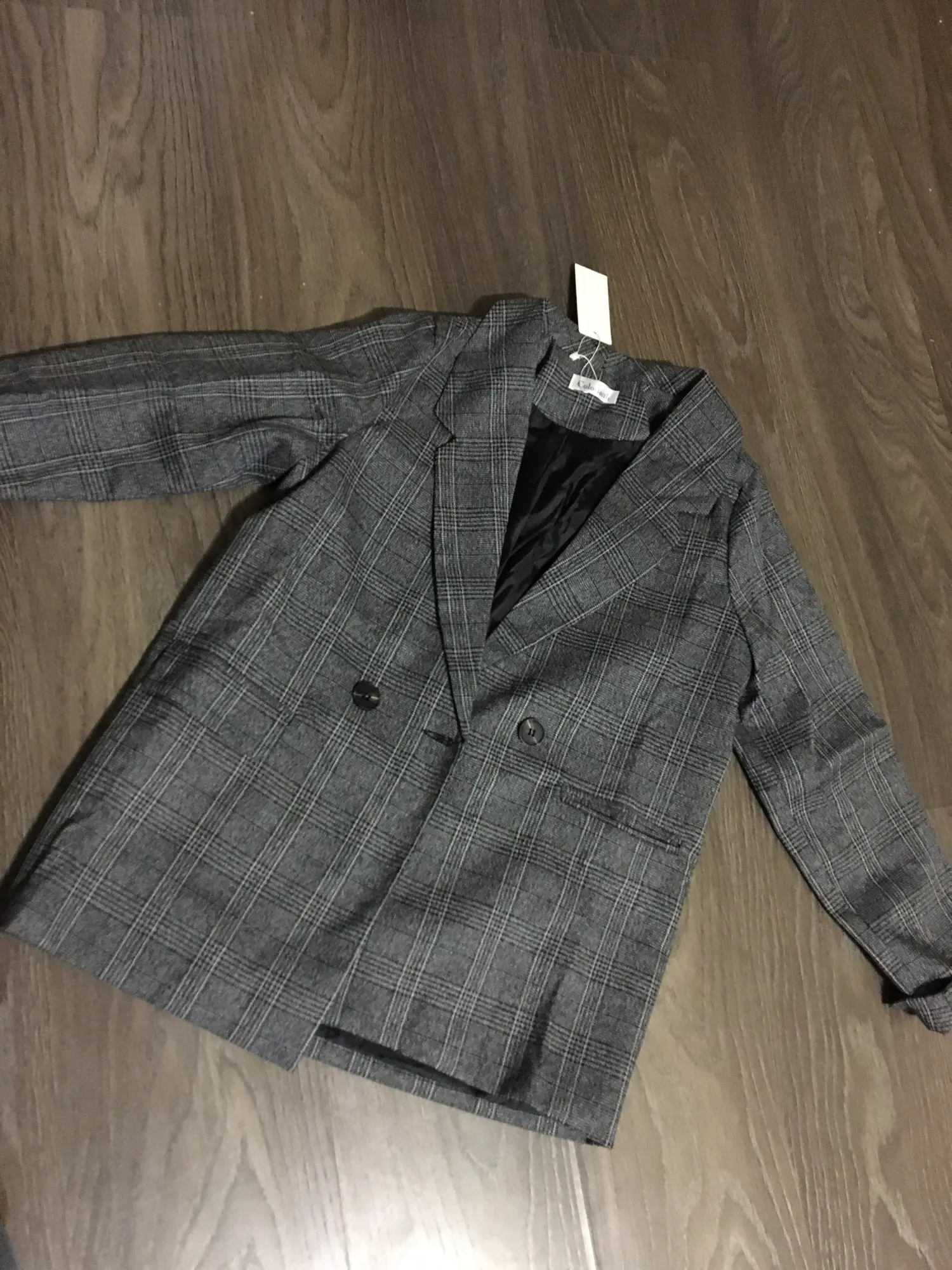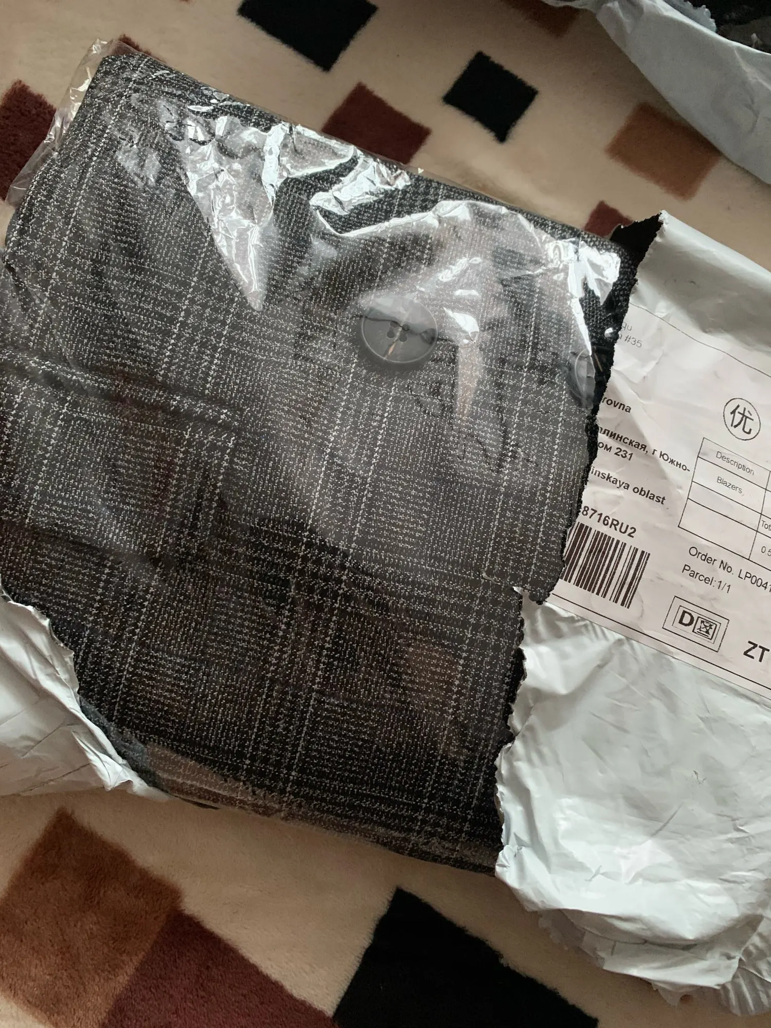 Классный пиджак! Пришёл быстро (10 дней до Челябинской области), неприятного запаха не было. На мой рост (163 см) длина то, что надо. По объёму тоже хорошо, немного оверсайз как и хотела. По цвету - темно-серый, с синими вкраплениями. Сшито хорошо, нитки не торчат. Симпатичные пуговицы. Положили в подарок открытку и пушинку.
