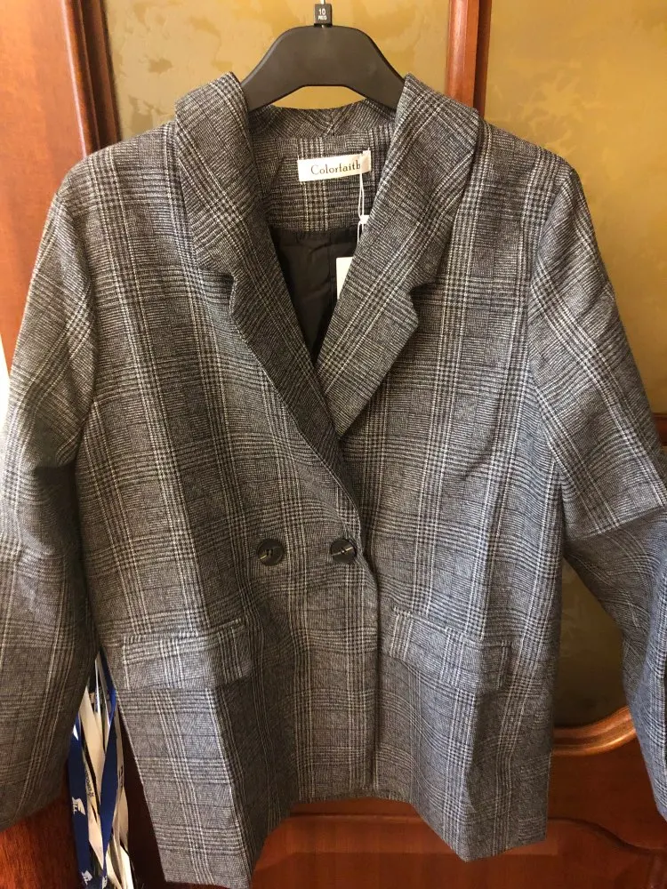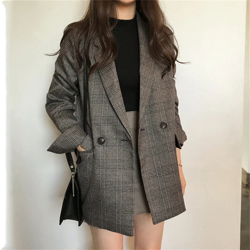 Блейзер Женский в клетку, двубортный, с карманами, на зиму и весну, JK7113, 2021