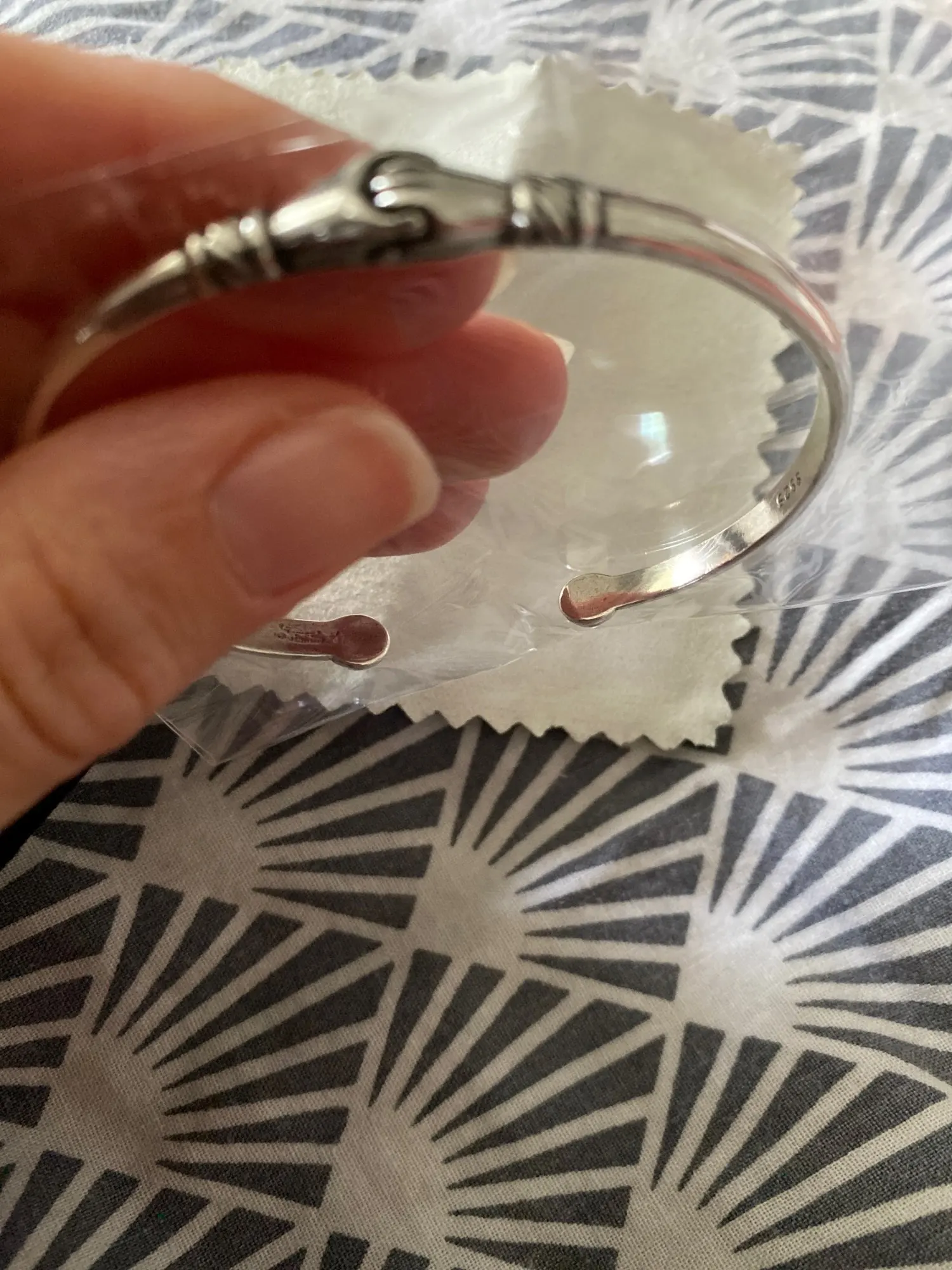 Спасибо, получила. Размер маленький, немного его я раскрыла, но если часто раскрывать и закрывать, думаю, что может сломаться. Продавец положил салфетку и мешочек бархатный, если на подарок, то очень прилично. Стоит проба s 925 не знаю насколько серебро.