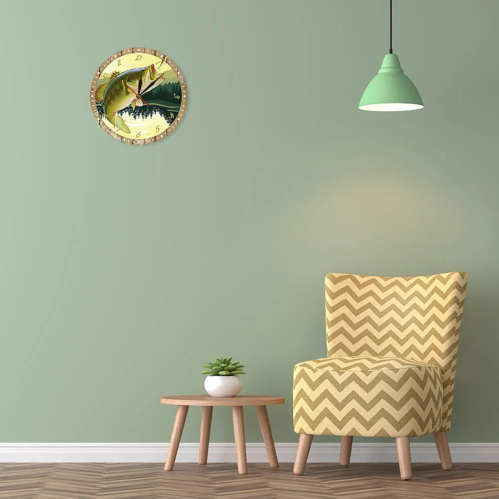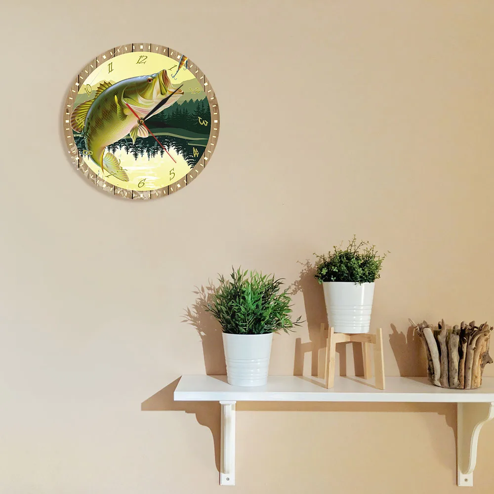 Часы-пещера для рыбалки It's Fish AT, настенные современные кухонные часы с полноцветным принтом, для ловли окуня, рыбалки, рыбалки, подарок