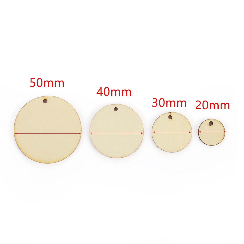 Деревянный подвесной кулон ручной работы сделай сам, круглая подвеска из натурального дерева, украшение для скрапбукинга, деревянное ремесло, украшение для дома, 50 шт.лот