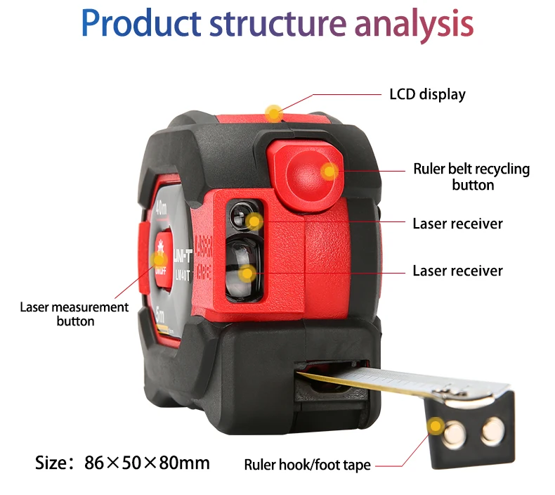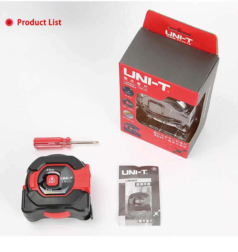Лазерная измерительная рулетка, UNI-T, 40 м, цифровой дальномер, выдвижная Лазерная линейка 5 м