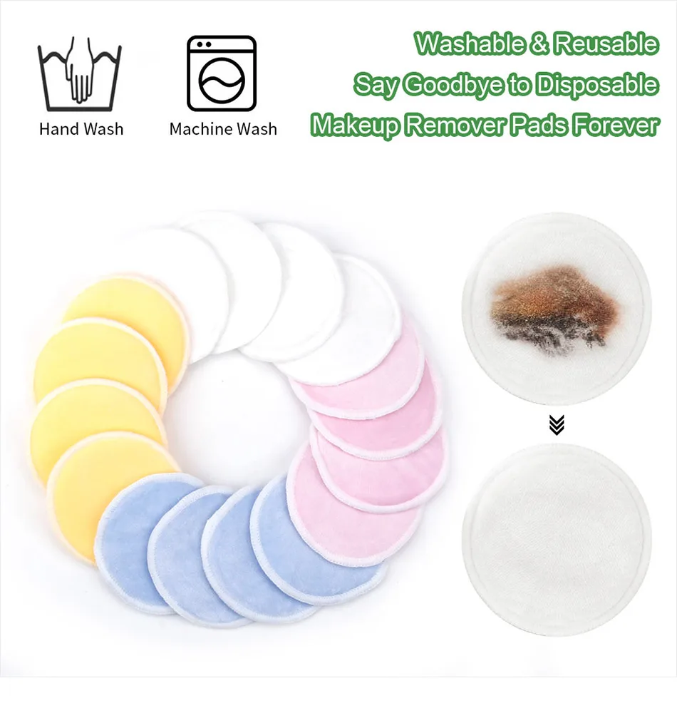 Многоразовые подкладки для снятия макияжа, моющиеся подкладки из хлопка и микрофибры для лица, трехслойные бамбуковые подкладки с мешком для стирки