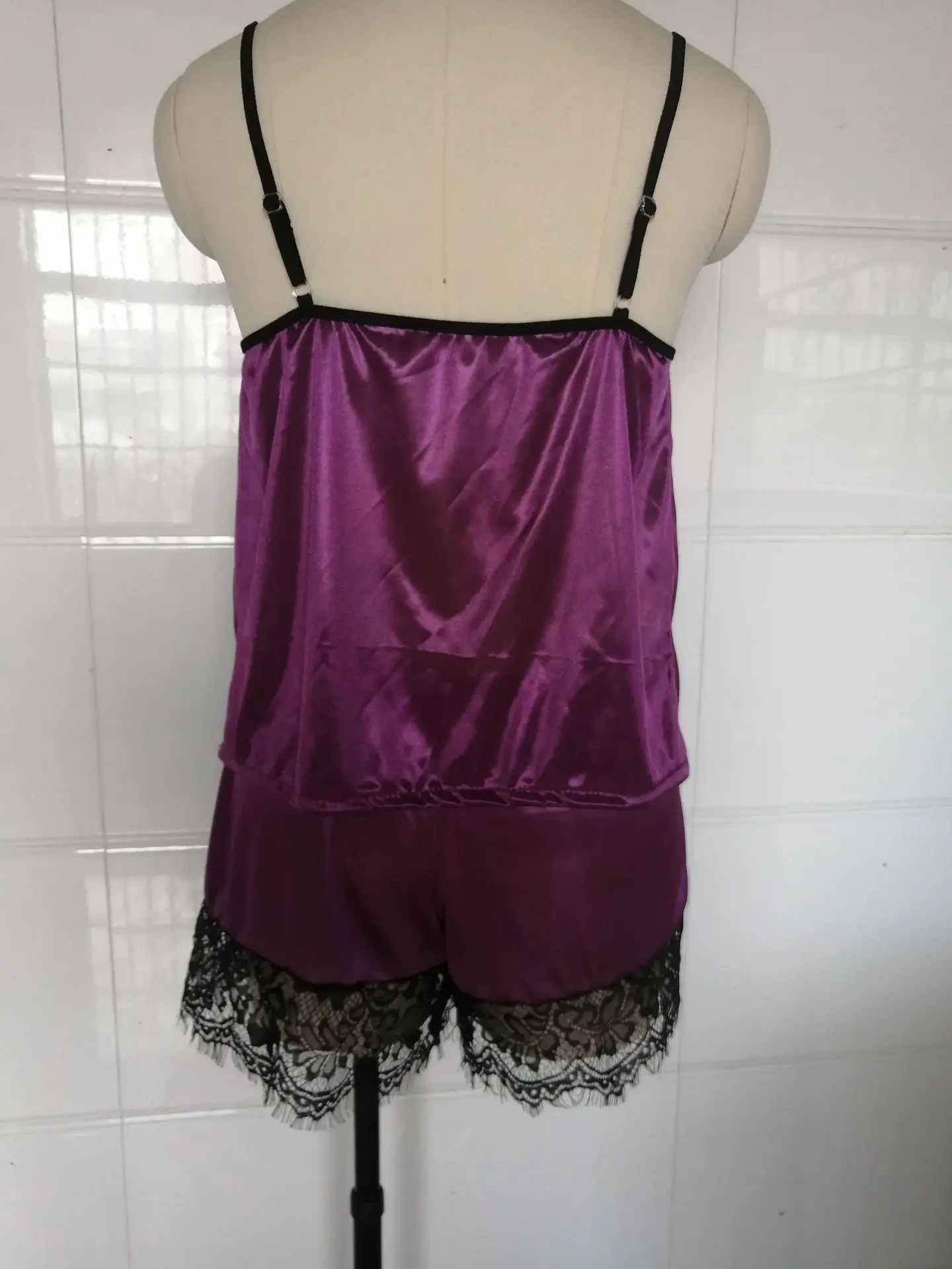 Пикантная летняя кружевная Пижама, одежда для сна для женщин, пижама без рукавов на бретелях-спагетти, атласное сексуальное нижнее белье, топ + шорты, пижамные комплекты