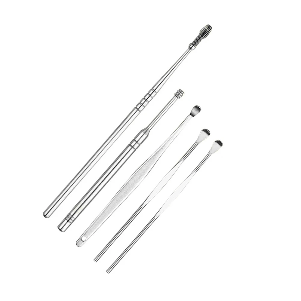 Спиральные ушные палочки, 5 шт., унисекс, из нержавеющей стали, для удаления воска, с коробкой, инструменты для ухода за ушами