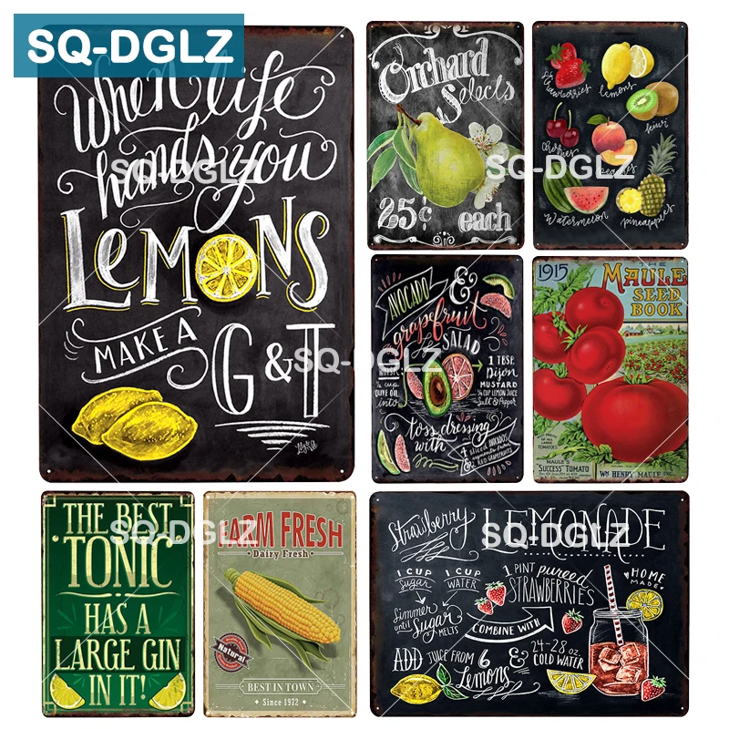 SQ-DGLZ лимонные фрукты, металлический знак, винтажный жестяной знак, Настенный декор, картина, плакаты, художественный постер, картина для домашнего декора