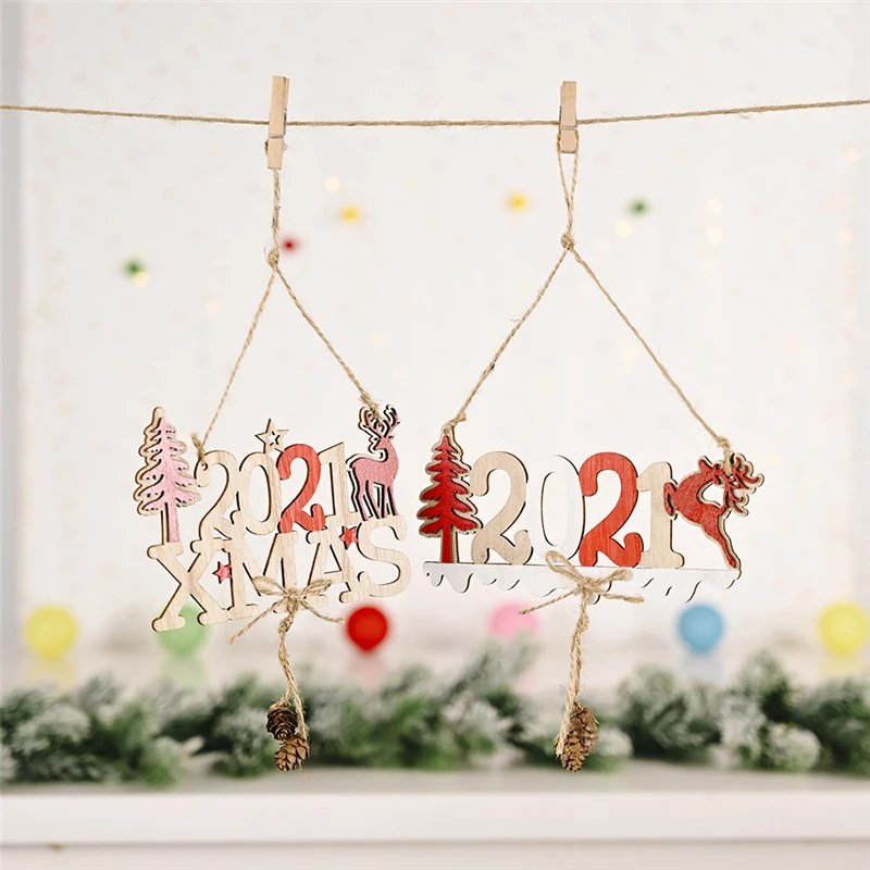 2021 Рождественская елка Деревянные Подвески Декор рождественские украшения для дома 2021 новый год Navidad DIY подвесное украшение Noel