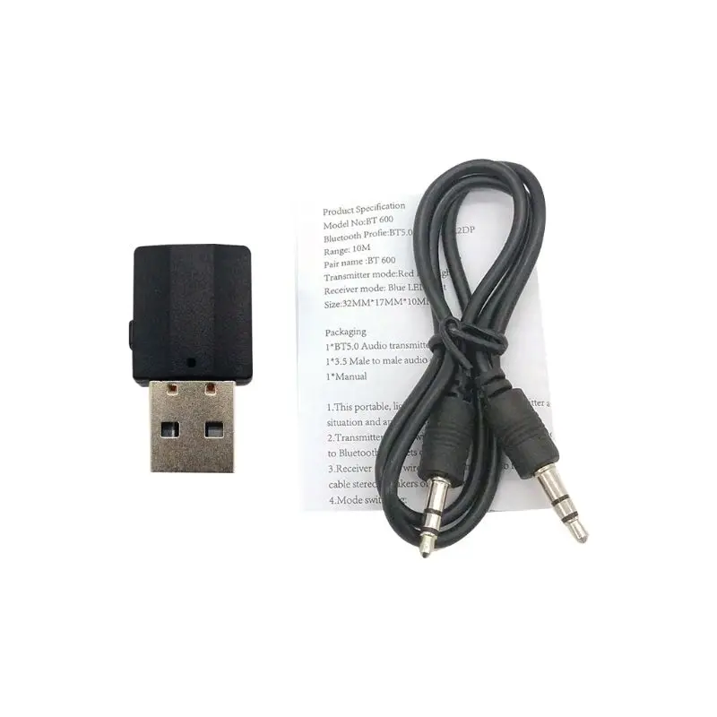 A. Режим приемника: синий светодиодный мигает, указывая на переход в режим приема. USB этого продукта используется для источника питания и может быть подключен к любому USB-интерфейсу с выходом 5 В, например, зарядному устройству мобильный телефон, мобильному источнику питания и т. д. Найдите Имя сопряжения BT600 в настройках Bluetooth вашего телефона. Синий светодиодный горит всегда после успешного сопряжения. Воспроизведение аудиофайлов в телефоне, Используйте аудиокабель 3,5 мм для подключения к динамикам, автомобильному аудиопорту Aux, обычным наушникам и другим устройствам без Bluetooth.
