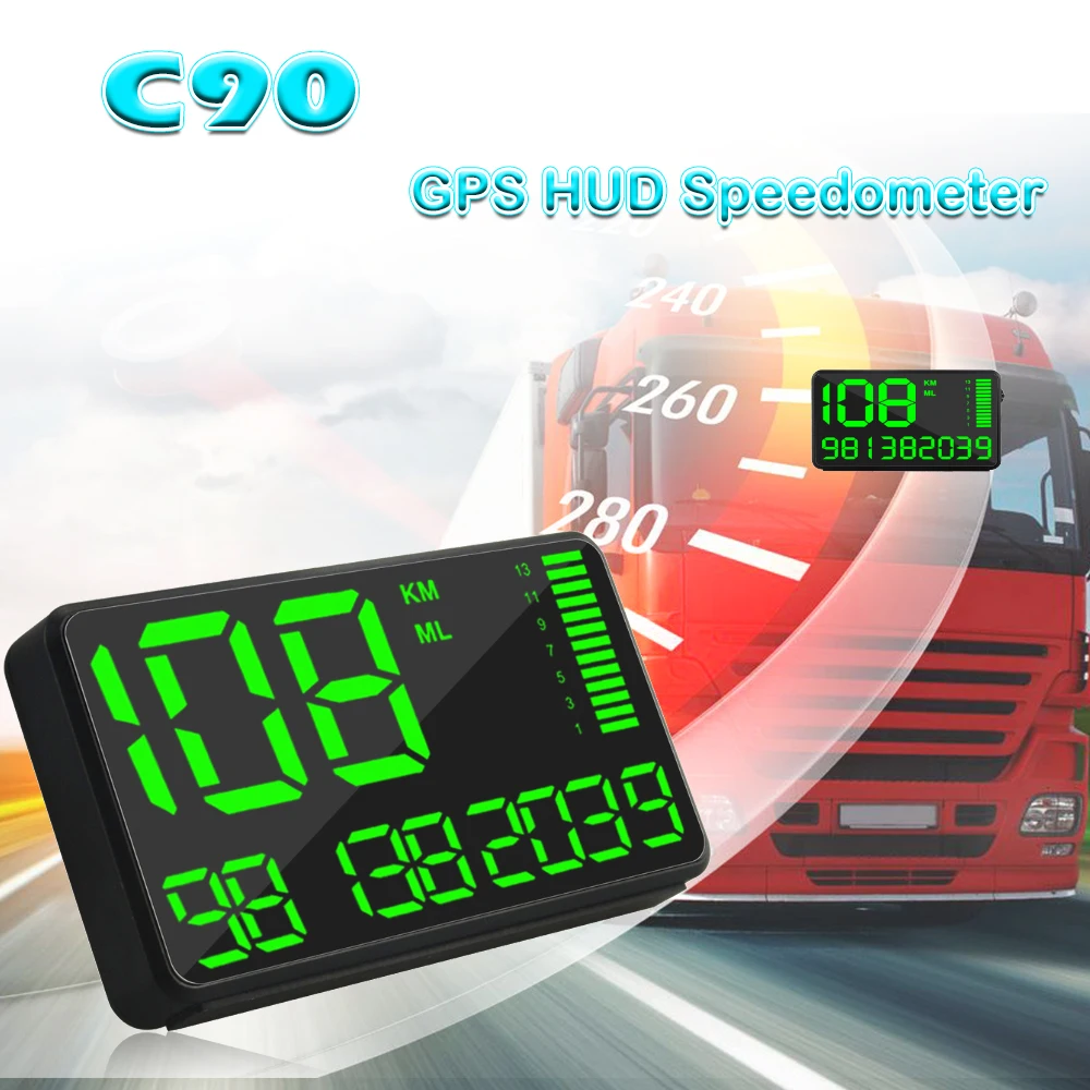 GPS Автомобильный спидометр C90 DC5V универсальный дисплей hud GPS вспомогательный инструмент с сигнализацией превышения скорости время вождения цифровой