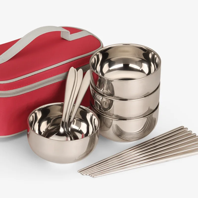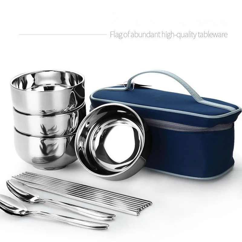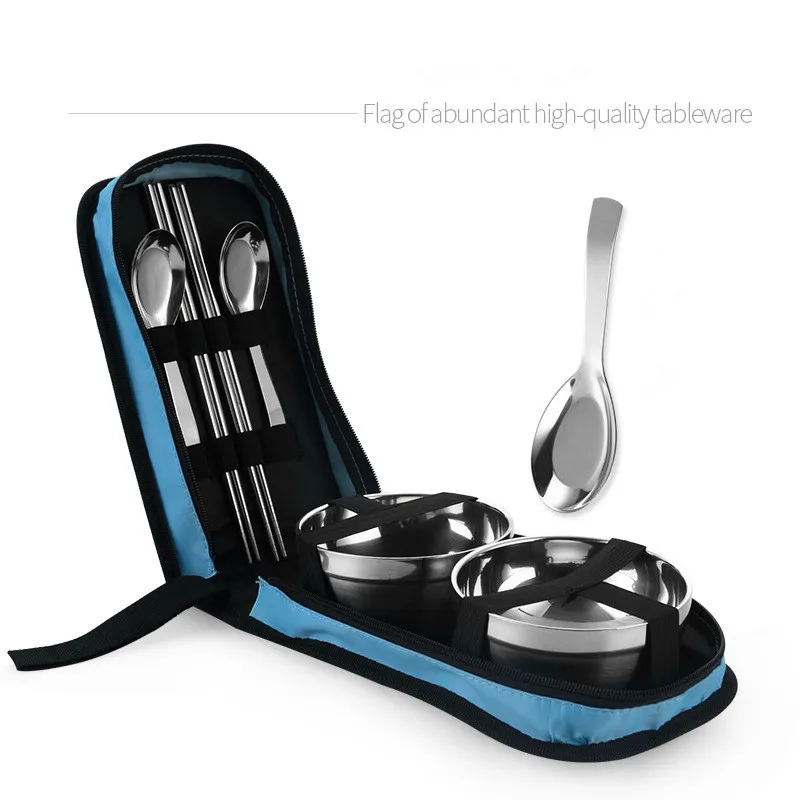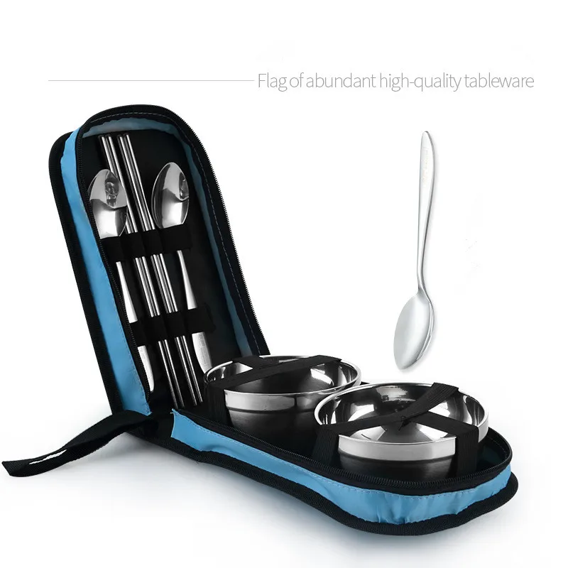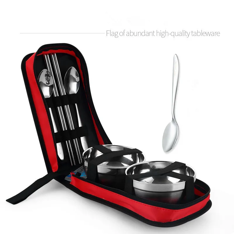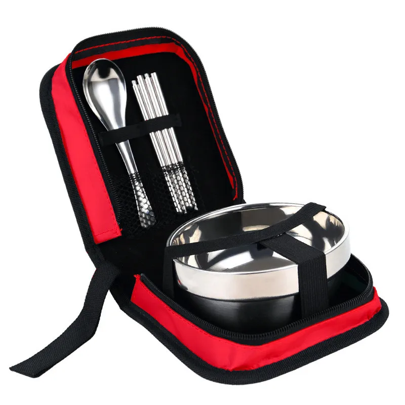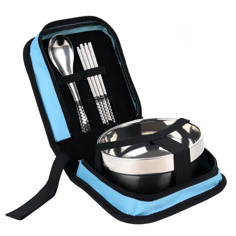 Столовые приборы из нержавеющей стали, складные палочки для еды ложки миски, сумка для пикника набор туриста, посуда для путешествий