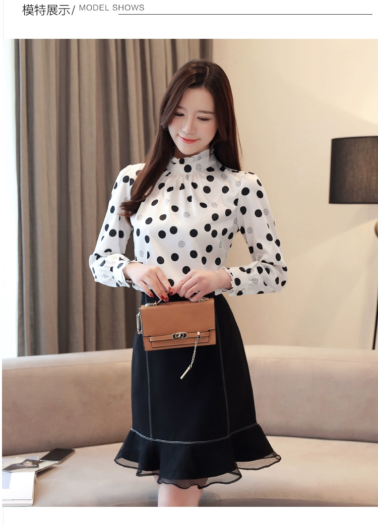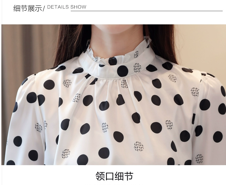 Женская шифоновая блузка в горошек, с длинным рукавом и воротником-стойкой