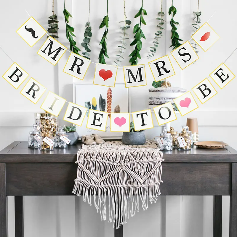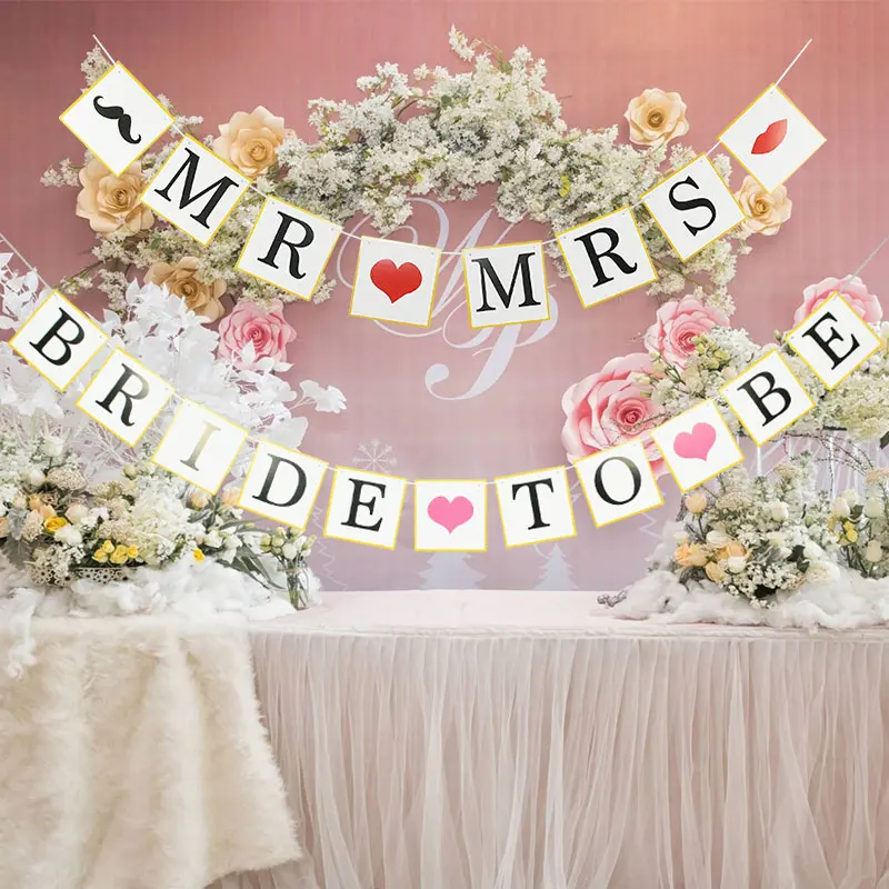 1 комплект, свадебные бумажные гирлянды Mr Mrs для невесты, настенные подвесные баннеры, вечерние баннеры для помолвки, вечерние украшения для свадебной вечеринки