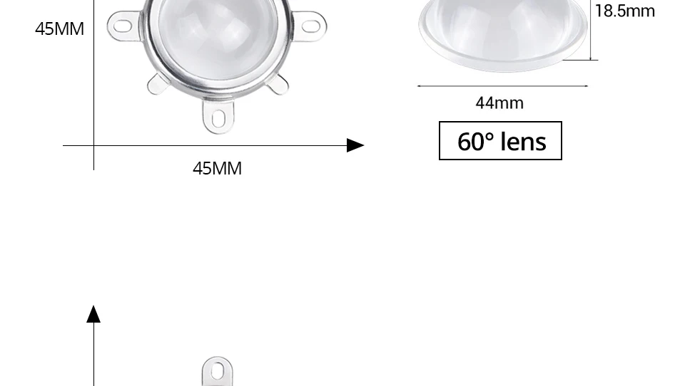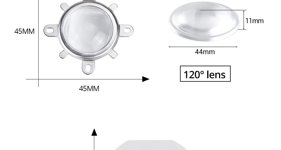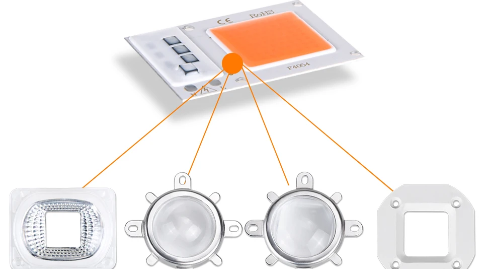 свет яркий, даже глаза режет, без линзы лучше не применять. обязательно нужен радиатор. рефлектор пластиковый. линза стеклянная. расположение отверстий ободка для крепления линзы проходят по краю платы.