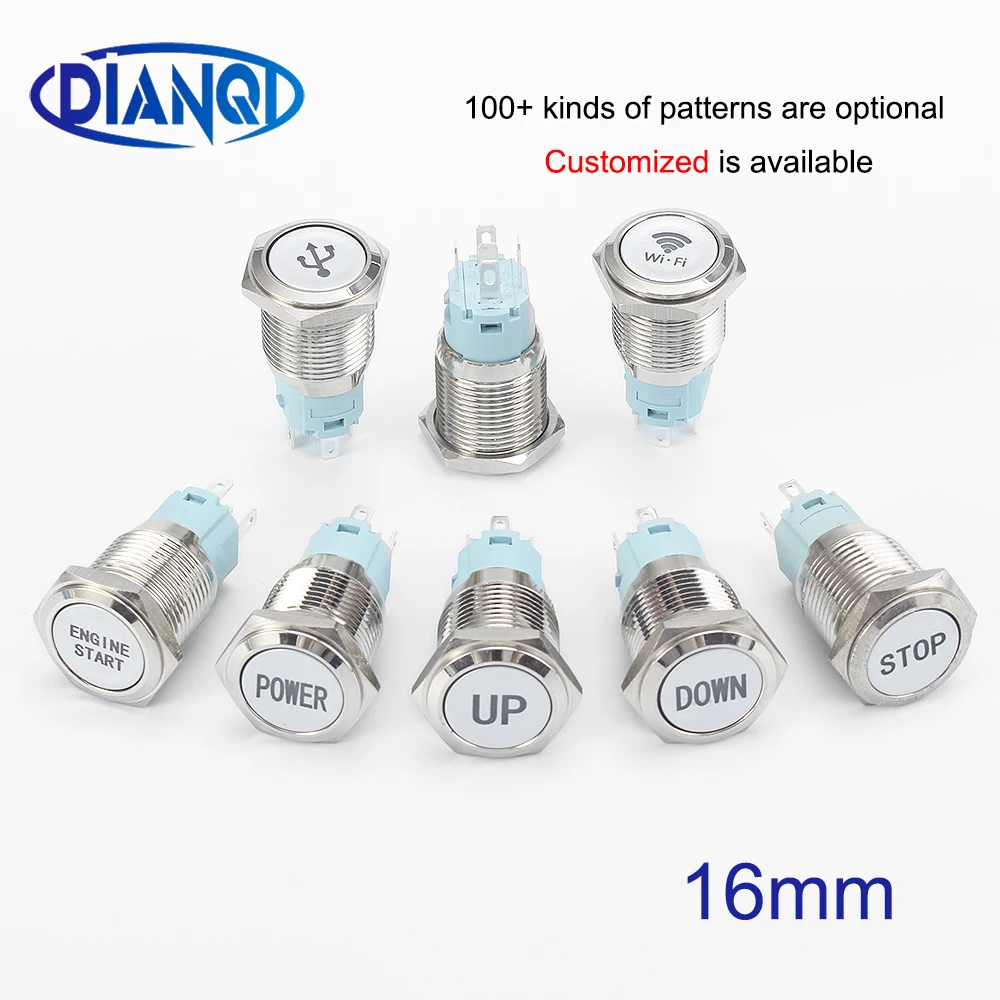 Металлическая латунная лампа с родиевым покрытием, 16 мм, Настраиваемые символы, плоские круглые вентиляторы, светильник с защелкоймгновенной задержкой