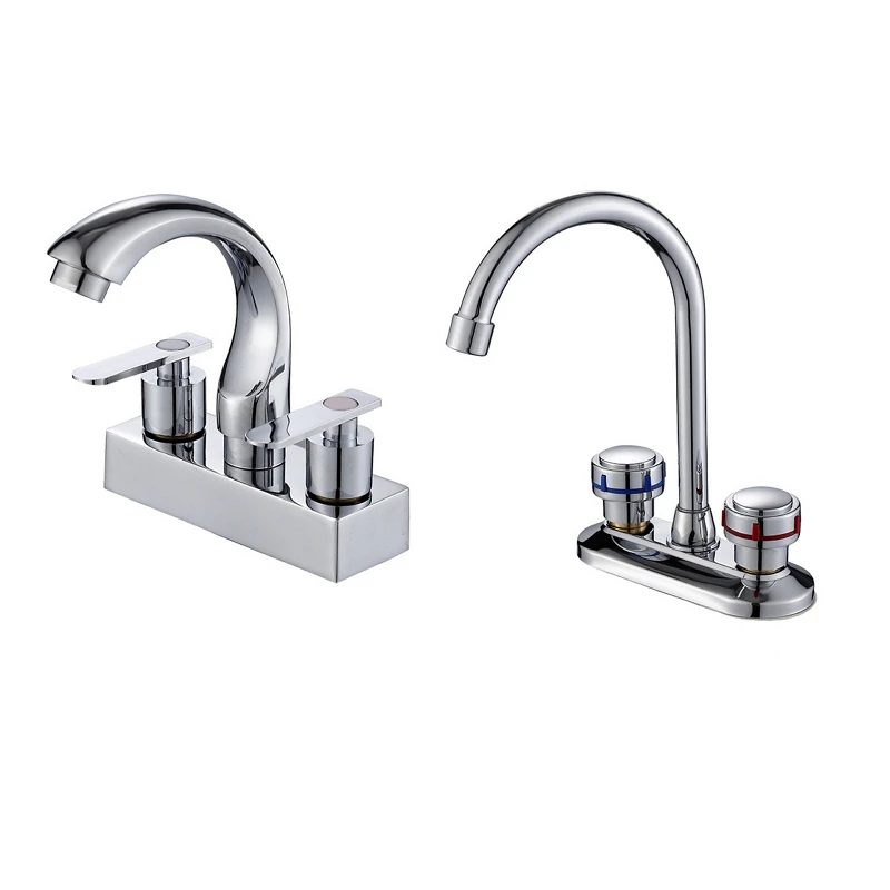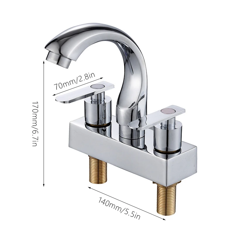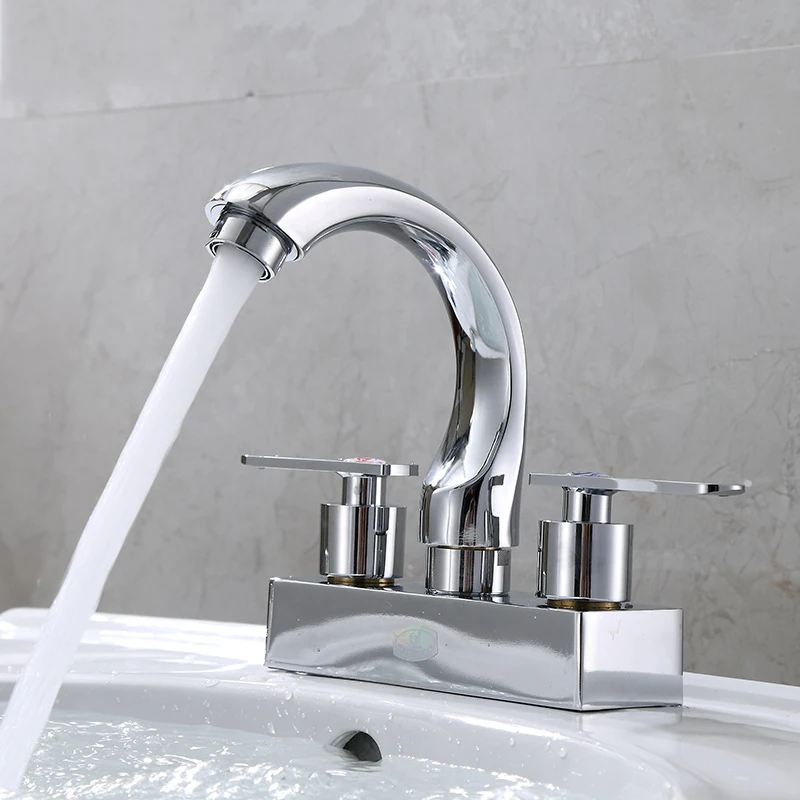 Смеситель для раковины с двойной ручкой, кран для ванной комнаты, для горячей и холодной воды, с двойным отверстием, для крепления на раковине