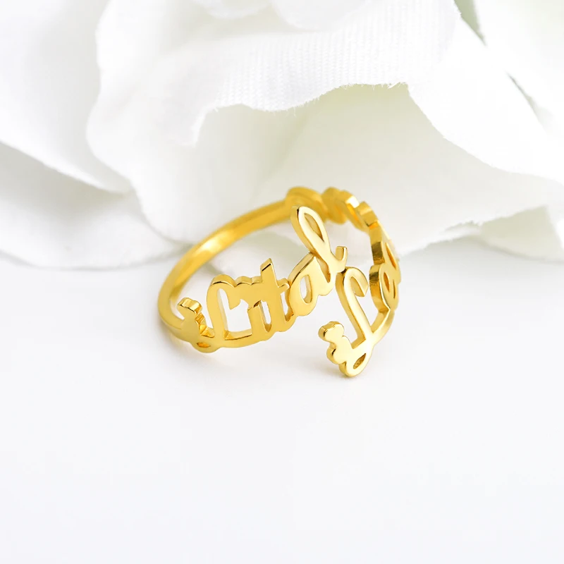 Двойное кольцо с именем на заказ, кольца с двумя именами на заказ, ...