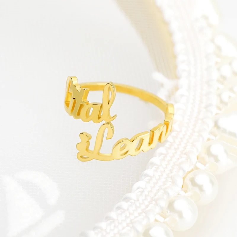 Изысканные украшения двухслойные кольца с именем на заказ, регулиру...