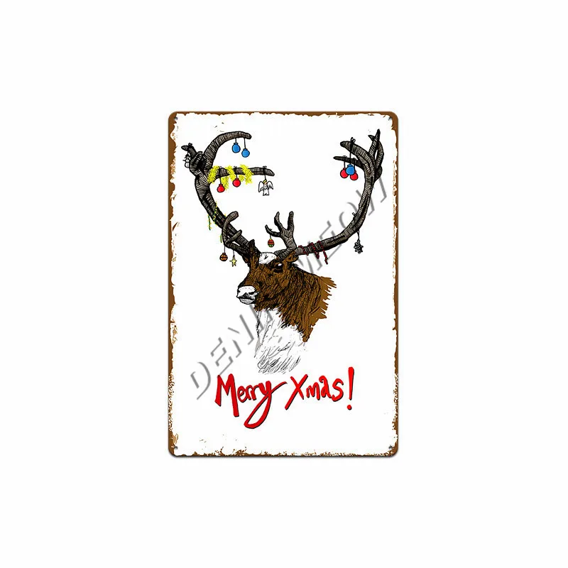 Рождественский плакат, винтажные металлические жестяные знаки, олень, милый плакат, декоративные тарелки для бара, кафе, сада, настенное искусство, домашний декор WY79