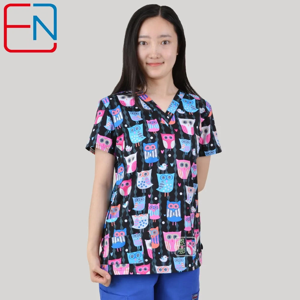 TC Прекрасный Принт scrubl униформа для женщин дышащая с v-образным...