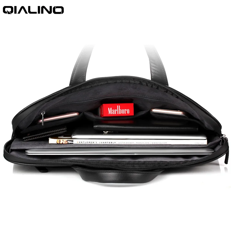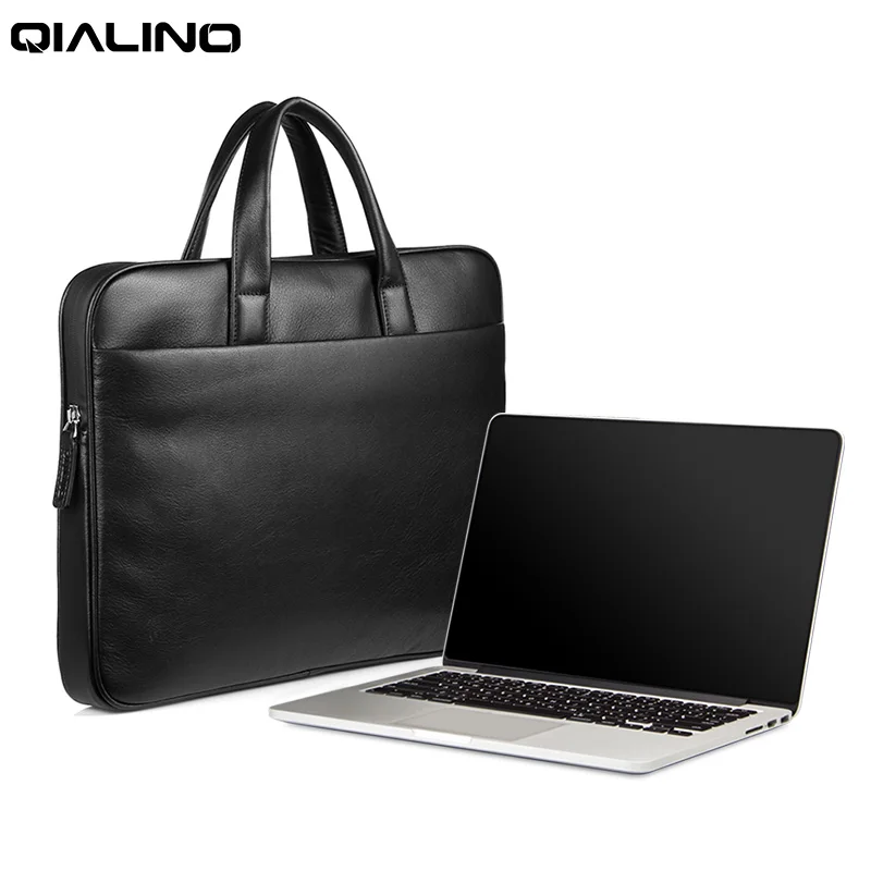 Кожаная Портативная сумка QIALINO для ноутбука, портативная водонепроницаемая сумка на молнии для планшета, чехол, короткая сумка, сумка для мужчин