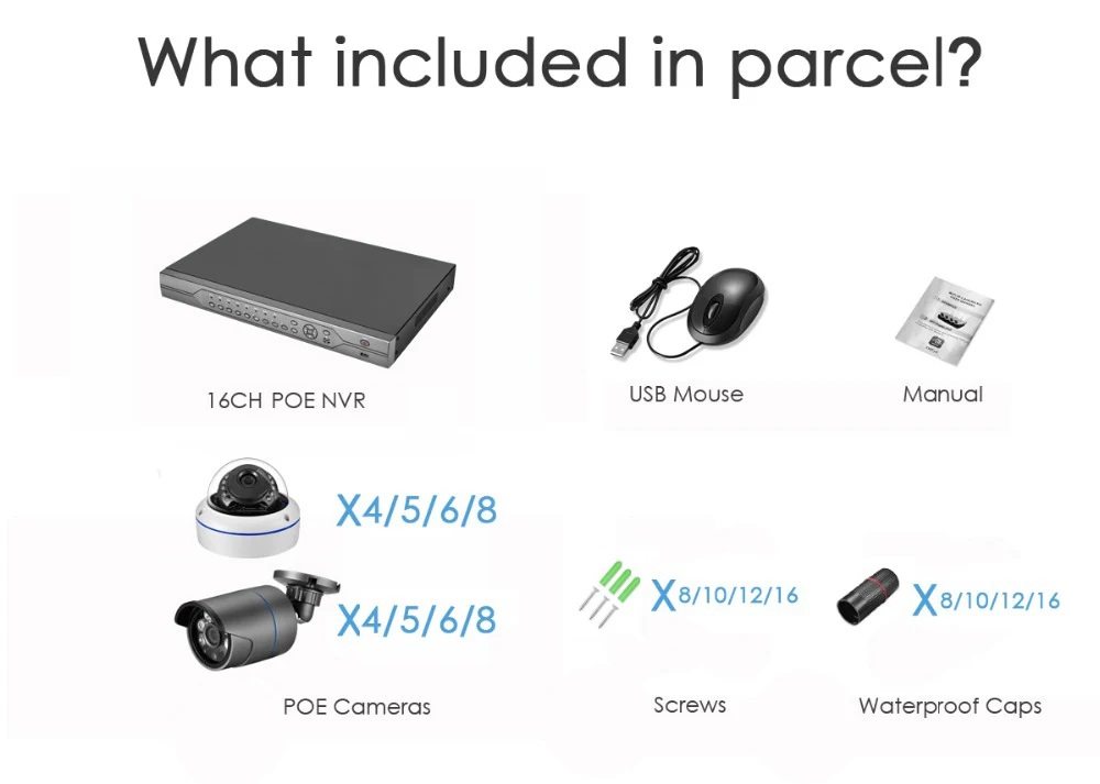 Система видеонаблюдения AZISHN H.265, 16 каналов, 3 Мп, POE, NVR, ИК IP-камеры с записью звука для улицы, комплект видеонаблюдения P2P, 4 ТБ