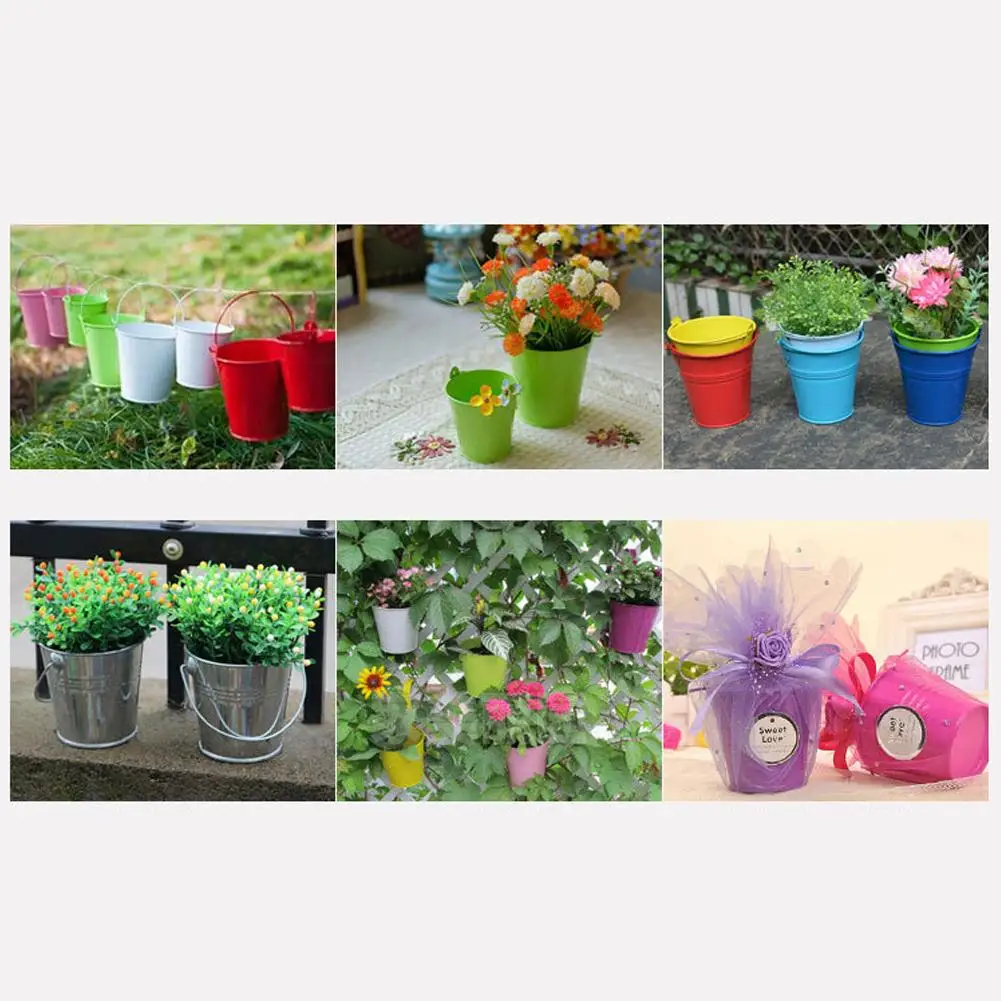 Мини цветочные металлические подвесные горшки для сада, балкона, настенное вертикальное подвесное ведро, железный держатель, корзина со съемным Оловянным декором для дома