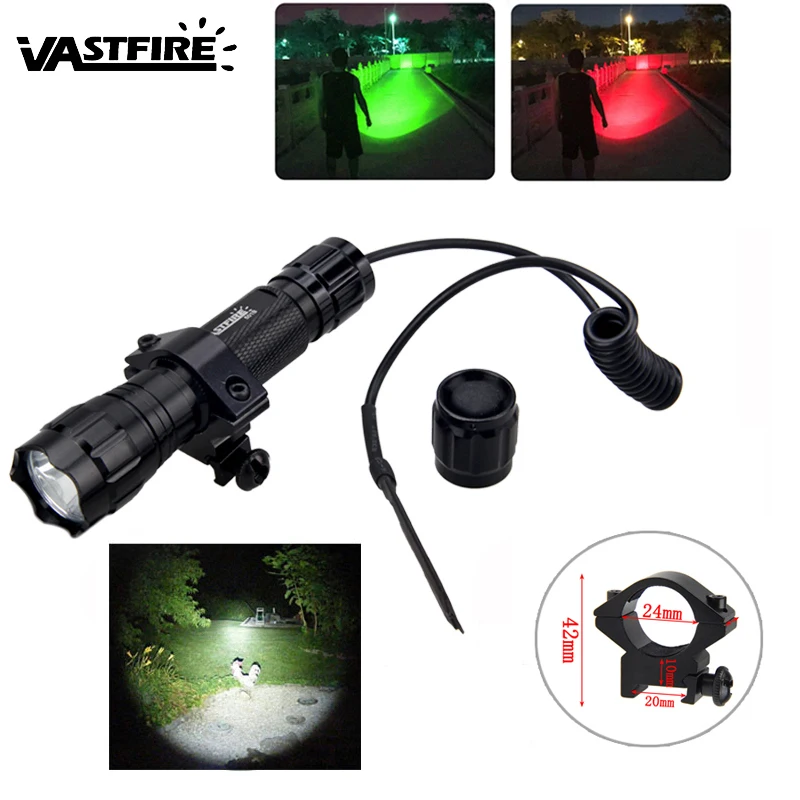 Тактический светодиодный фонарик, белыйзеленыйкрасный, для охоты, Режим ВКЛВЫКЛ, военный фонарь с креплением для винтовки + пульт дистанционного управления давлением, без батареи