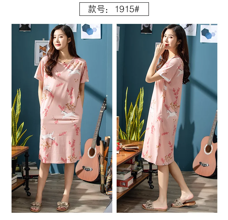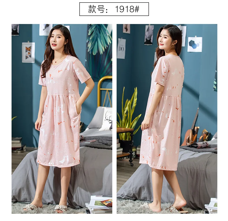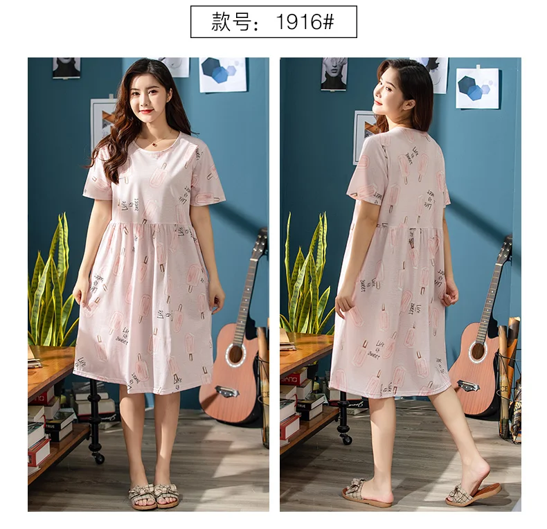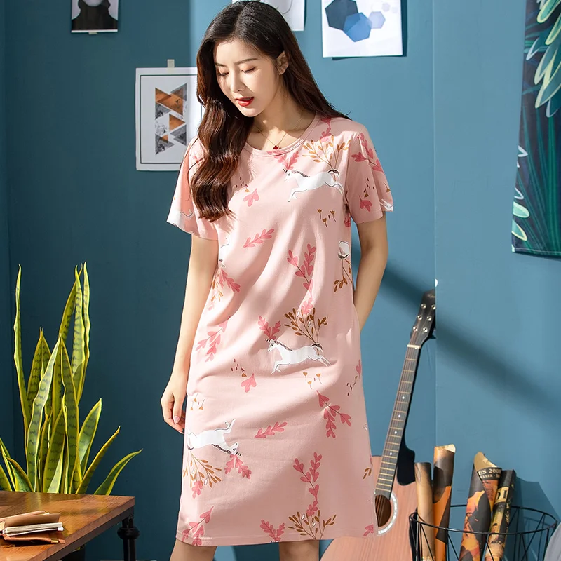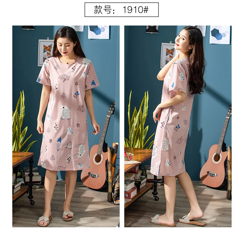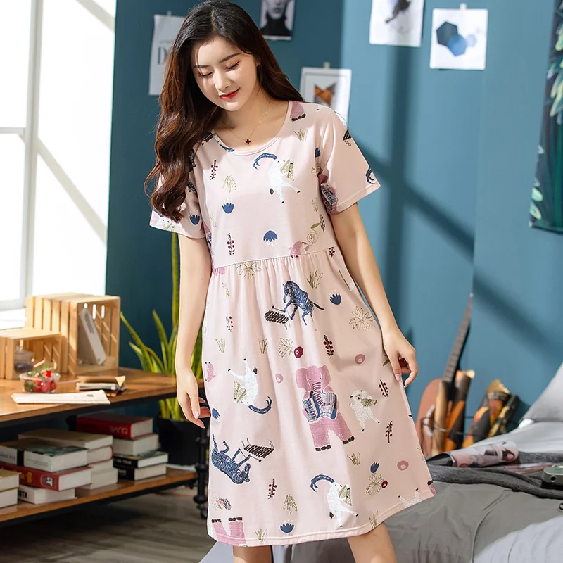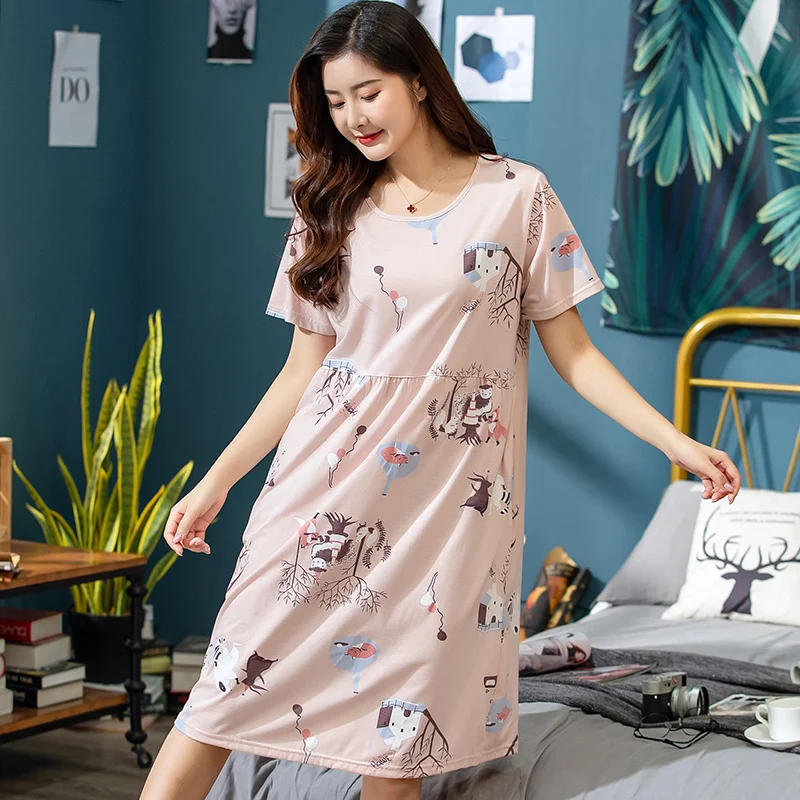 Платье женское хлопковое с мультяшным принтом, ночная рубашка с круглым вырезом, с коротким рукавом, милая ночнушка, домашняя одежда, одежда для сна, весна-лето 2019, XXXL