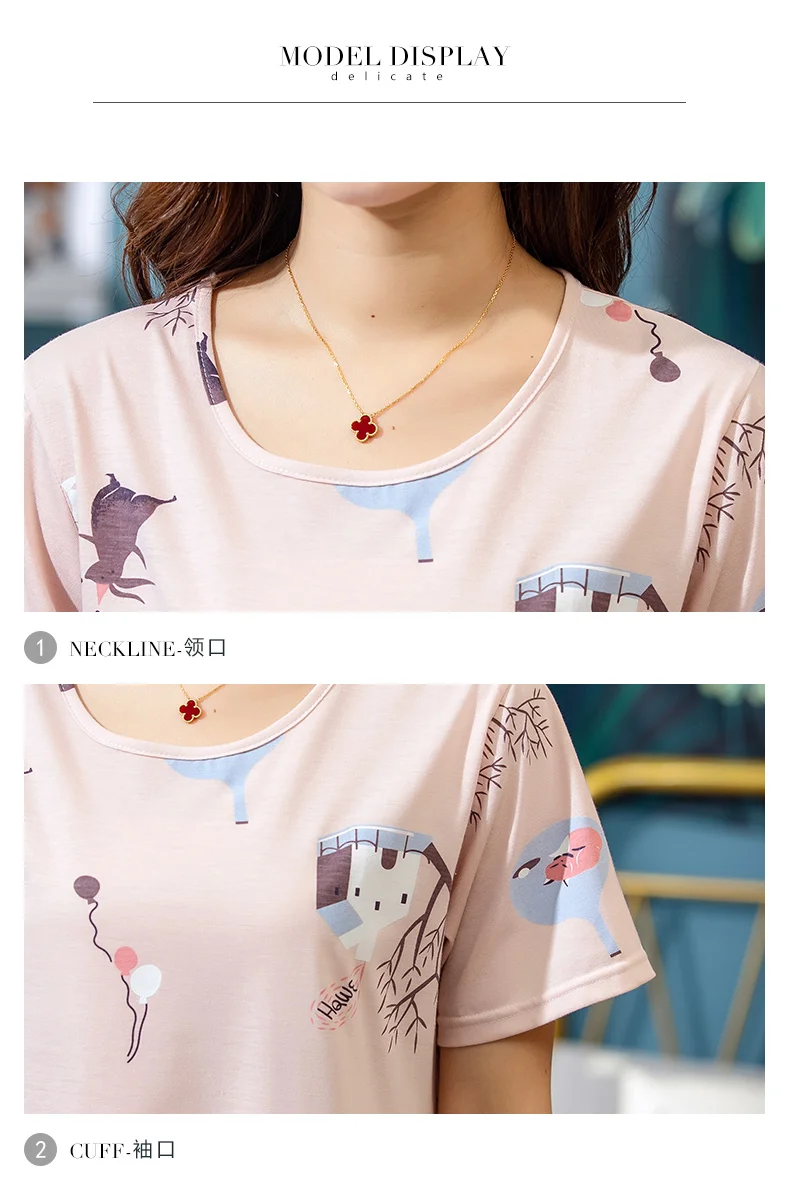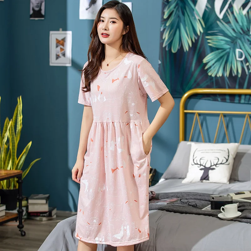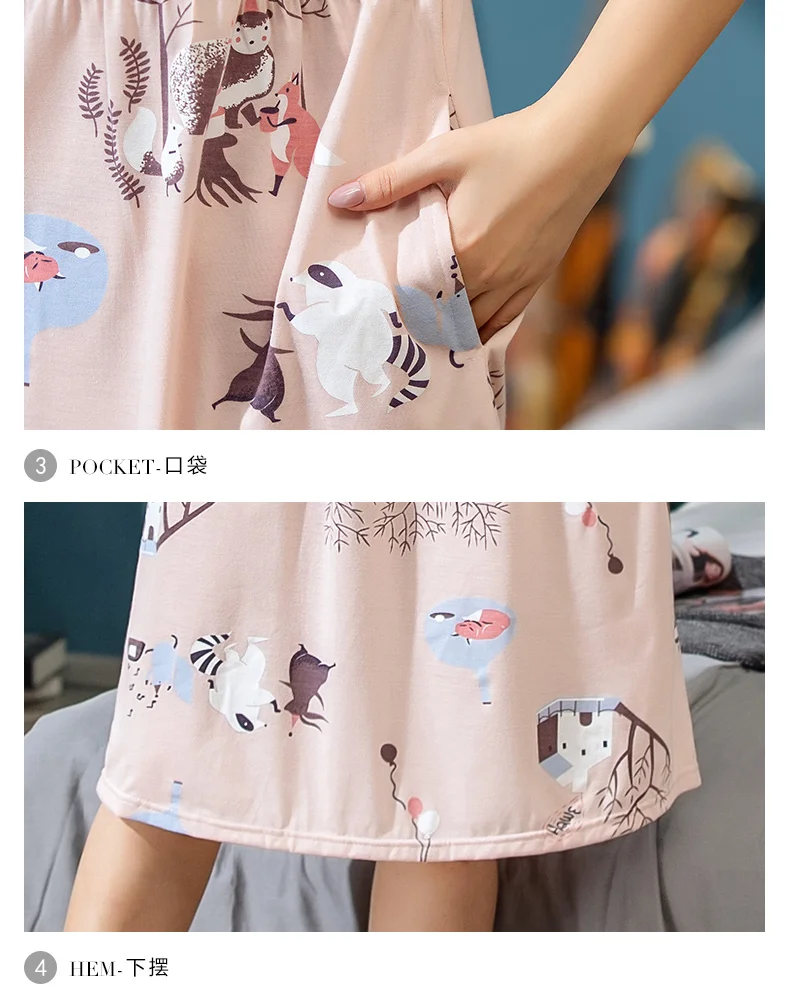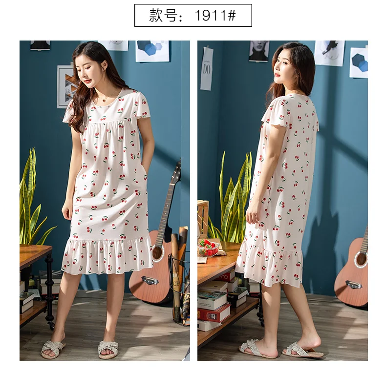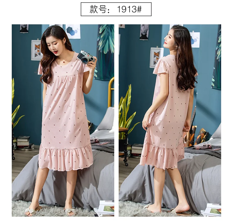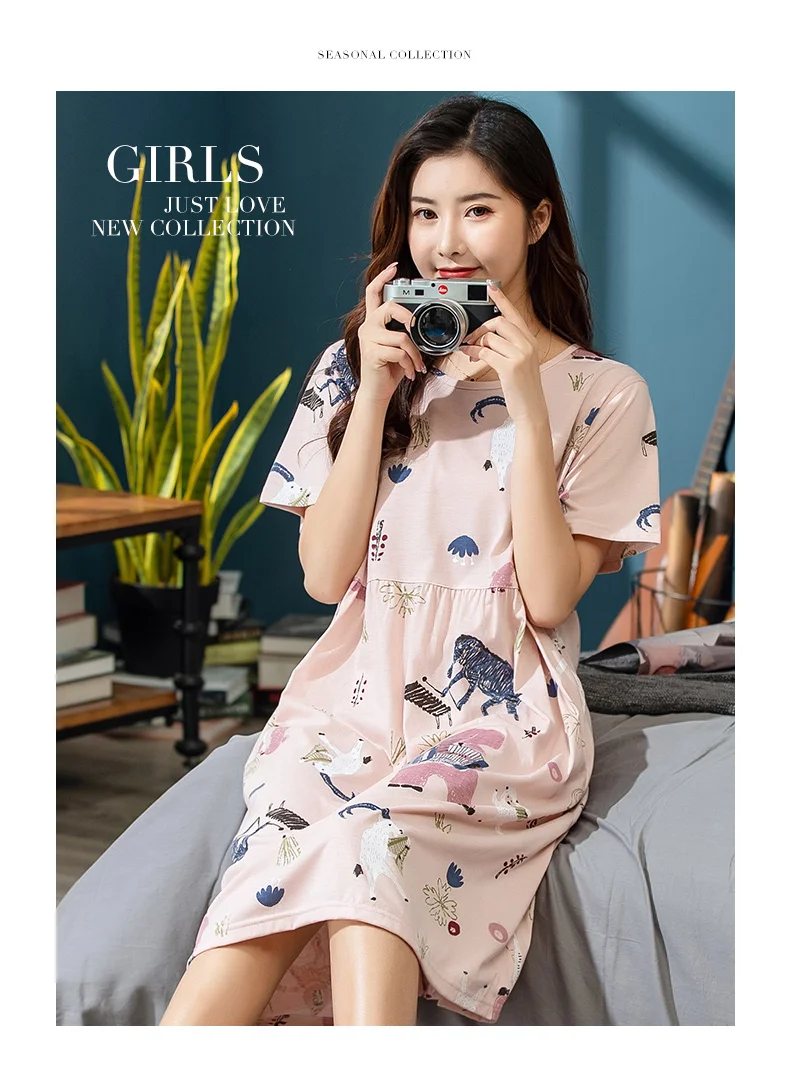 Платье женское хлопковое с мультяшным принтом, ночная рубашка с круглым вырезом, с коротким рукавом, милая ночнушка, домашняя одежда, одежда для сна, весна-лето 2019, XXXL