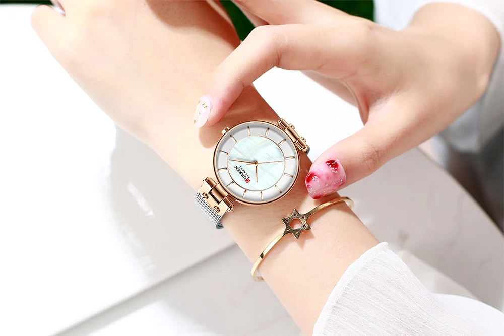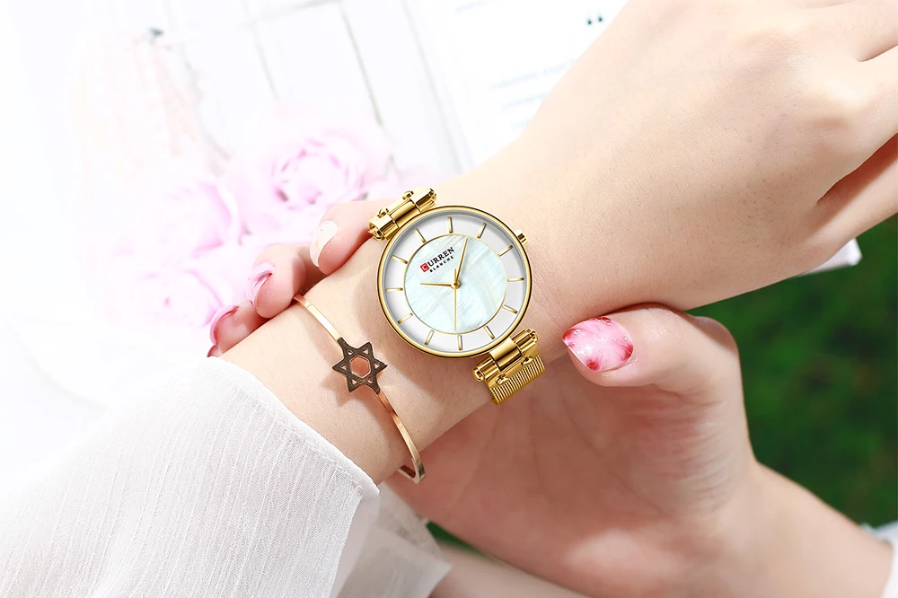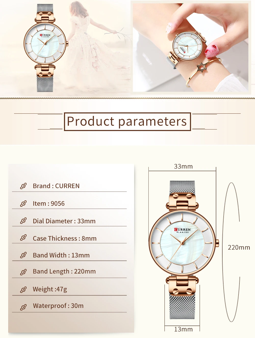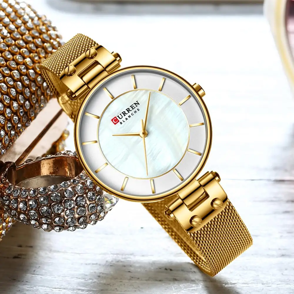 Простые креативные кварцевые часы CURREN, женские наручные часы со стальным сетчатым браслетом, новые женские часы, женские часы с браслетом