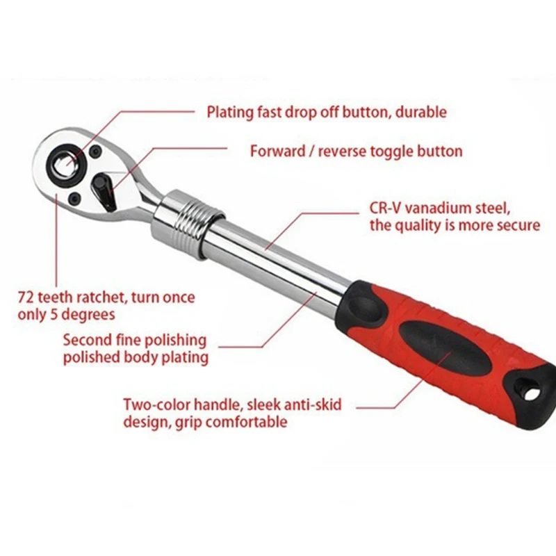 KINDLOV храповый ключ 14 "38" 12 "Chave Catraca высокий крутящий момент Автоматическая розетка Adjustable Регулируемый 72 зубчатый гаечный ключ набор ручных инструментов